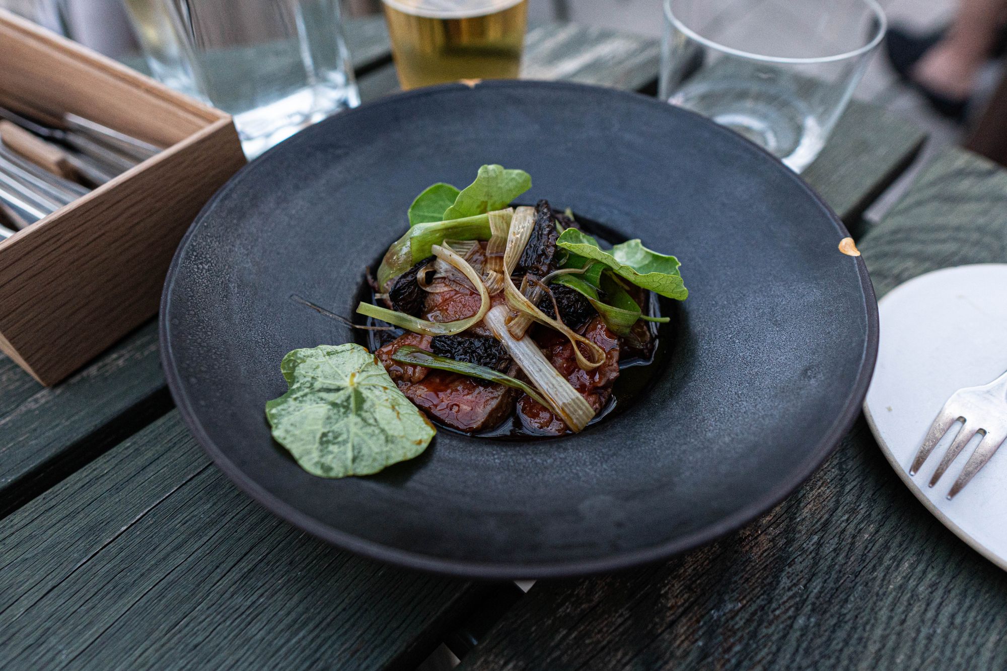 여름 휴가 기간 동안만 운영되는 SKIPPERS INN에서 풀어낸 스톡홀름의 여름이란 여행과 휴가의 모습이었다. 그들의 요리는 실은 외국 어디에도 존재하지 않는 새로운 것에 가깝지만, 경험의 여러 측면이 합쳐져 하나의 추상적인 인상을 그려낸다. 잠깐의 휴식, 어딘가로의 도피. 유르고르덴 앞을 흐르는 물결의 평화로움과 도츠, 그리고 번뜩이는 조리가 휴가를 주제로 한 팝업 레스토랑의 가능성을 보여준다. 남의 나라에 휴가를 와서 또 휴가를 만날 줄 누가 알았겠는가?