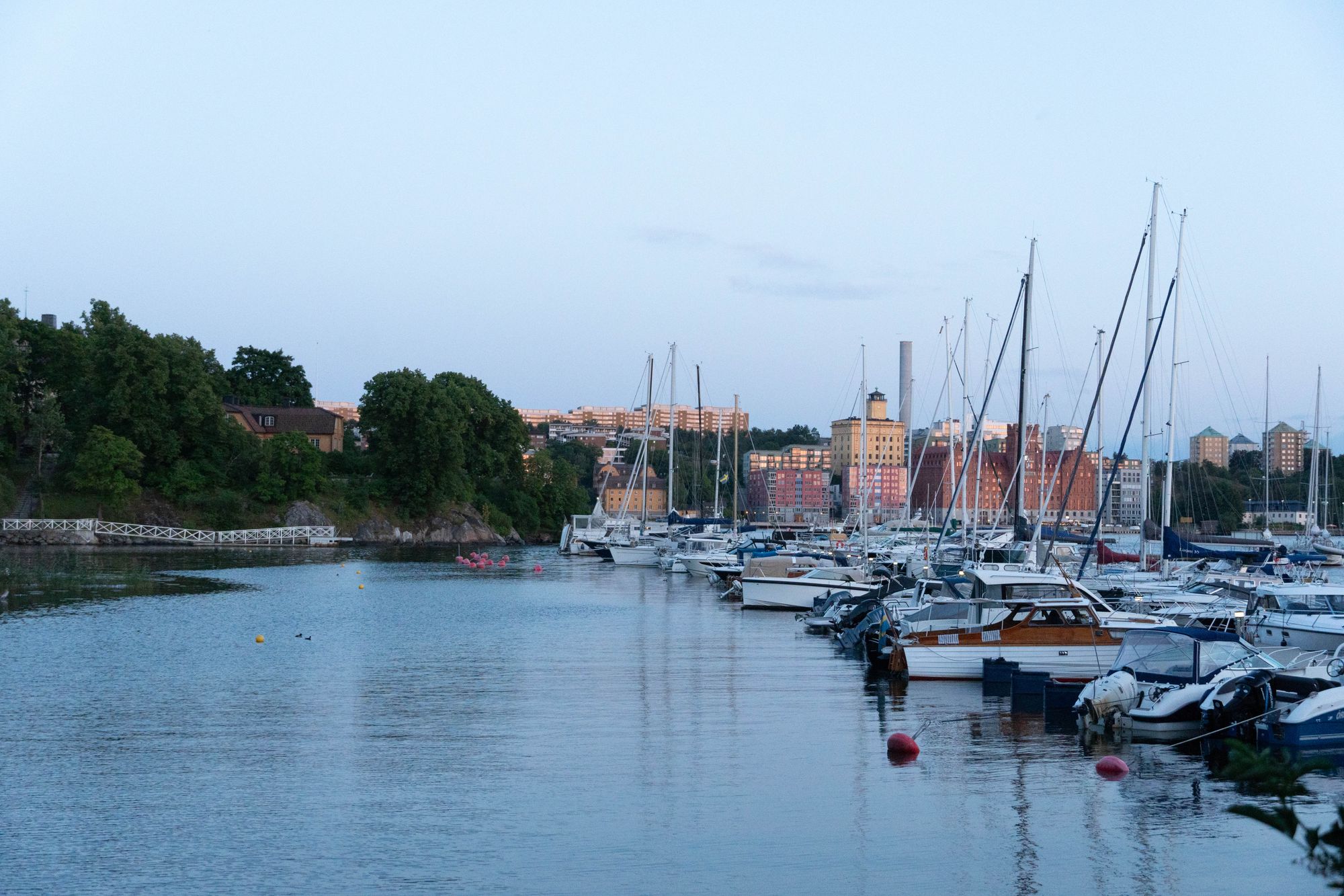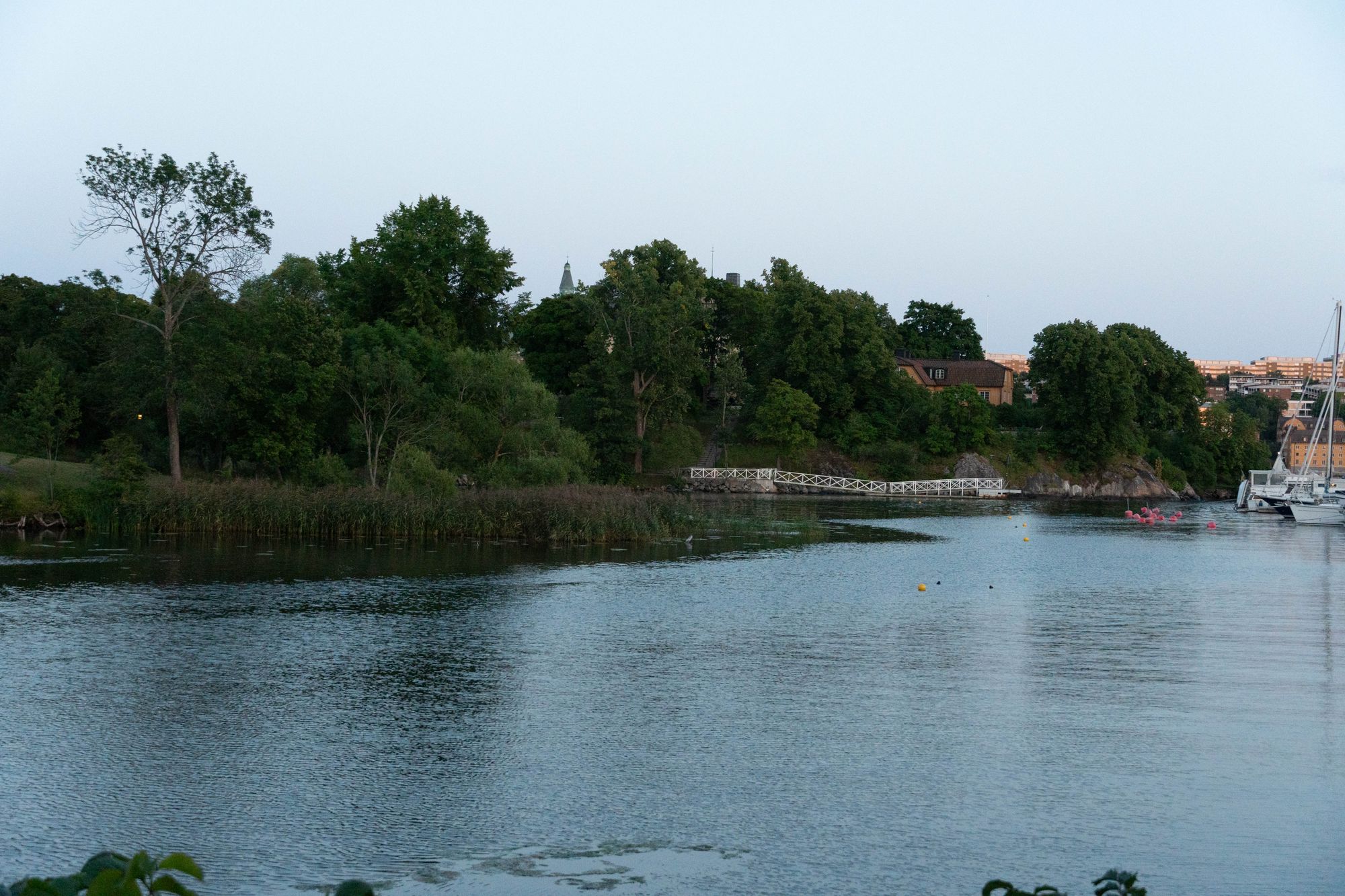 레스토랑 앞에는 AIRA를 상징하는 요소, 스톡홀름의 물이 펼쳐진다. 촬영 시각은 약 오후 8시경으로, 북유럽의 해가 지지 않는 여름을 단적으로 보여주고 있다.