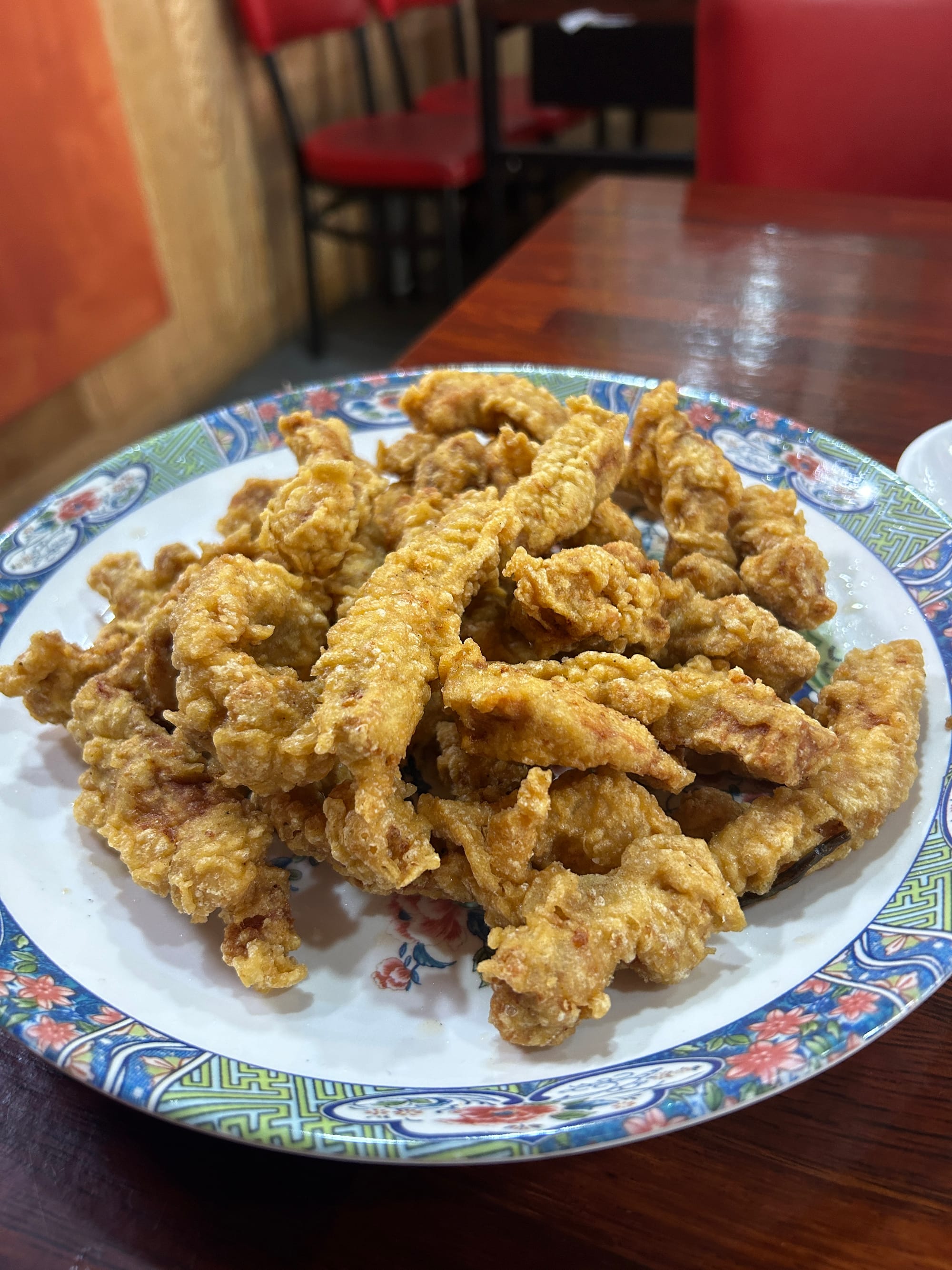 안동반점의 고기튀김은 적절한 두께로 잘라낸 고기를 소금과 후추에 의존해 먹는, 단순하고 파괴적인 추억의 음식이지만 이제는 이것이 중국식 튀김 요리의 이상향이라고 주장하고 싶지 않다. 같은 분과 내에서도 '팔선' 계통 스타일처럼 고기의 진한 맛이 튀는 방향도 좋다고 생각한다(최근에 '맛이차이나'에 다시 간 이유도 바로 거기에 있었다). 잡채밥의 볶음밥은 잡채와 조미의 역할을 안분하고 있어 점잖은 와중에도 텍스처는 좋지만, 이제는 '홍명'처럼 당면은 체면치레 수준으로 비중을 줄인 잡채가 이 요리의 발전 방향으로 옳다고 생각한다. 당면과 밀가루 뭉쳐 만든 각종 가공품은 현대 한국인의 주적이다.