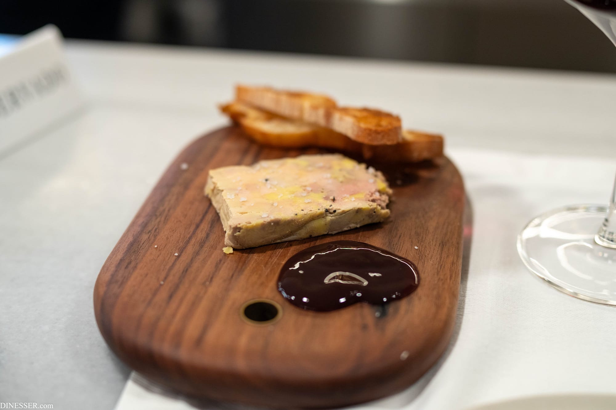 구운 초리조를 생략하고 선택한 푸아 그라였는데, 에체바리에서 과거에 꽤 자주 다루던 재료였지만 그런 가스트로노미의 스타일을 완전히 버리고 약간의 소금과 진득한 잼으로 전통적이고 가벼운 스타일의 서비스를 제안한다. 애초에 접시가 아닌 도마에 오르는 것까지 그 취지가 명백하다. 겨울이 아니기도 하다보니 지방도 썩 옅은 편이고, 이날의 요리 중 가장 에체바리답지 않은 인상이라고 할 수 있었다.