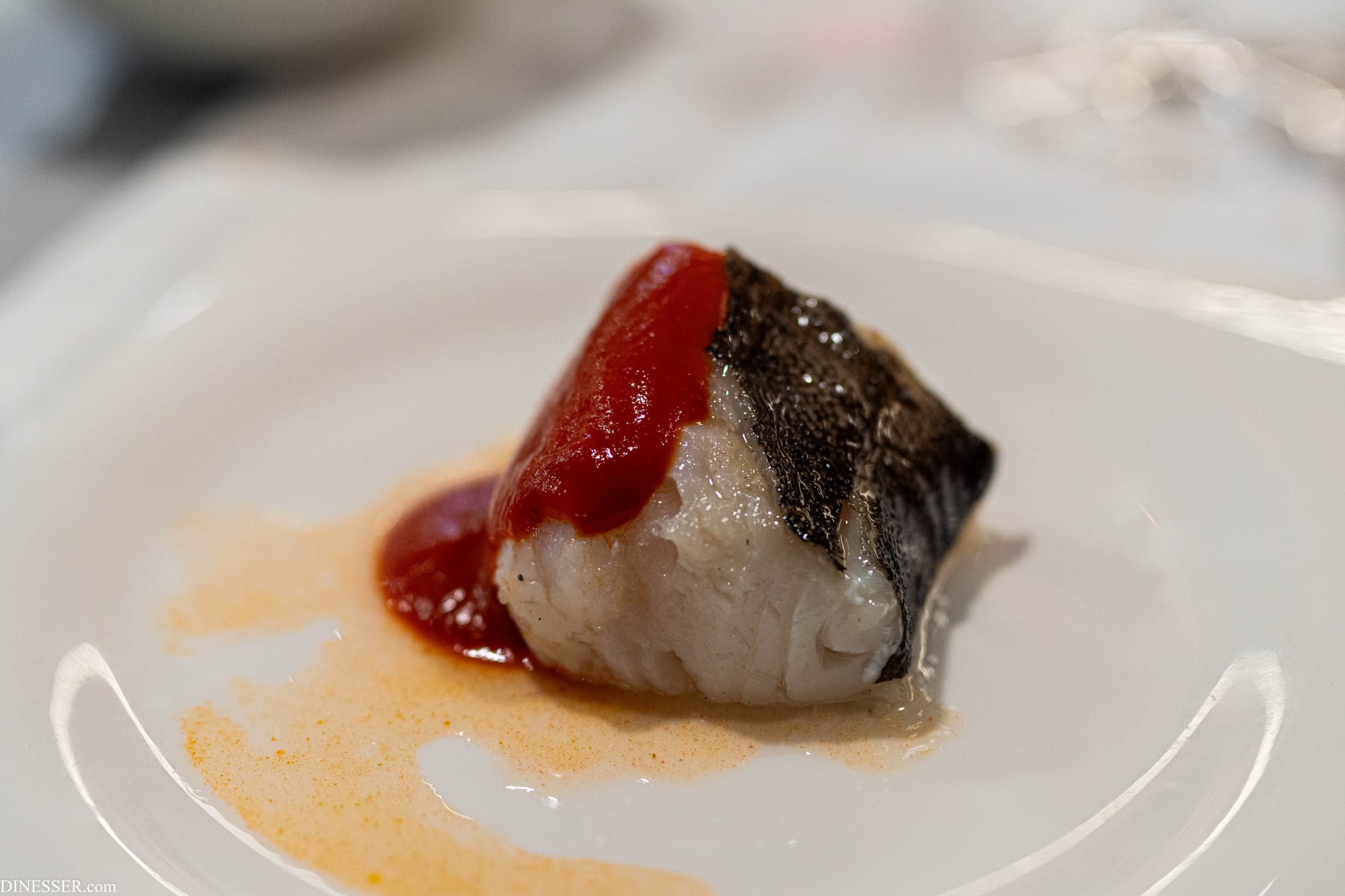 조리에 시간이 걸리는 요리들은 시작과 동시에 한 번에 주문을 받고 일괄적으로 나오는데, 그 신호탄을 이 대구 요리가 담당한다. 에체바리가 자랑하는 열과 불을 다루는 솜씨, 그리고 재료의 우수함을 한껏 맛볼 수 있는 요리였는데, 특유의 그을린 향이 톱 노트에서 후각을 자극하고 수분의 손실이 거의 없이 조직의 변화는 완전히 이끌어내는 촉촉함은 열조리의 이상에 가까이 닿은 주방의 솜씨를 유감없이 드러낸다. 짠맛이 강하게 살아있는 생선과 피키요 고추로 드라이하게 연출한 단순한 요리이지만 주방의 저력이 드러난다.