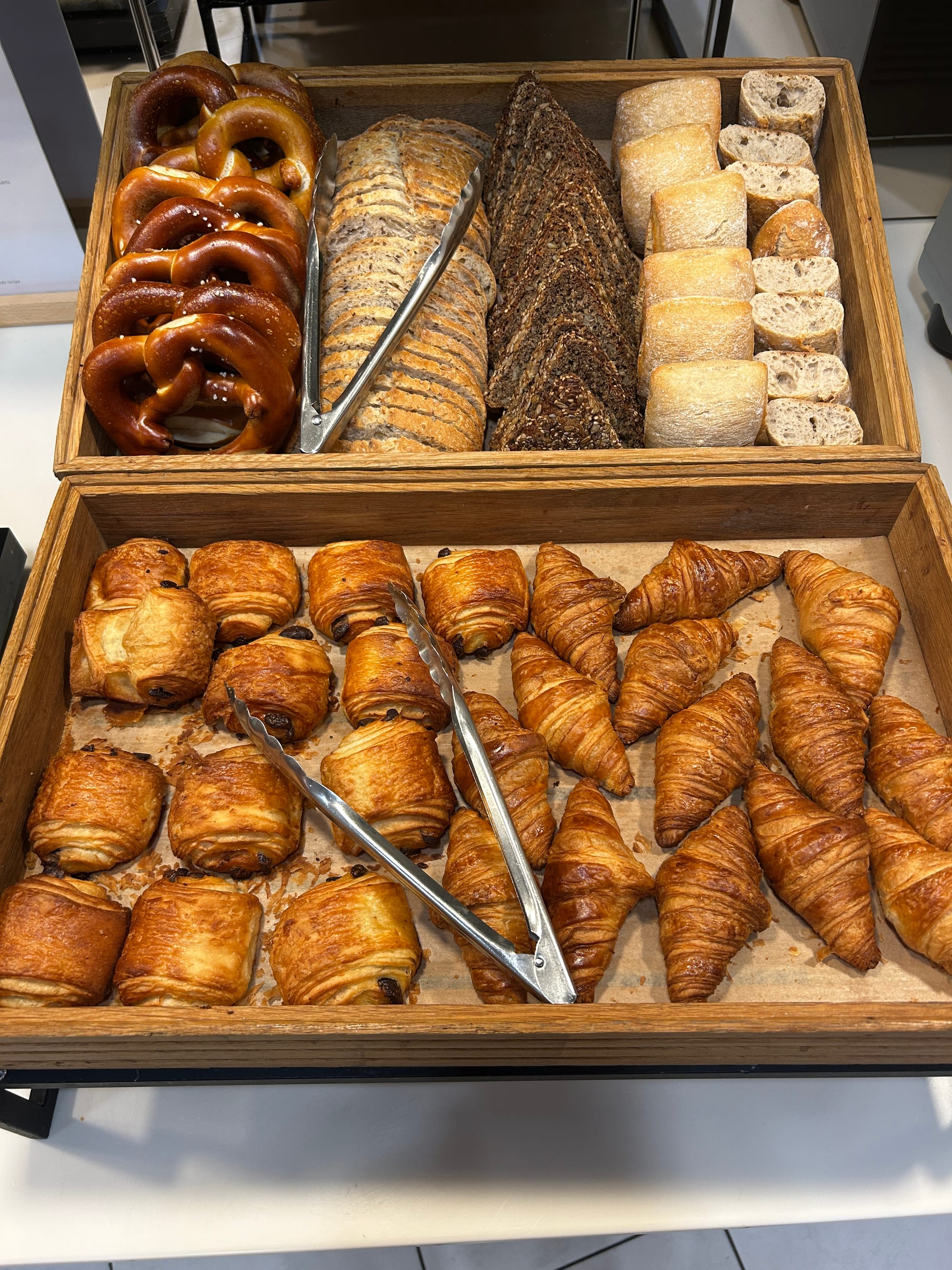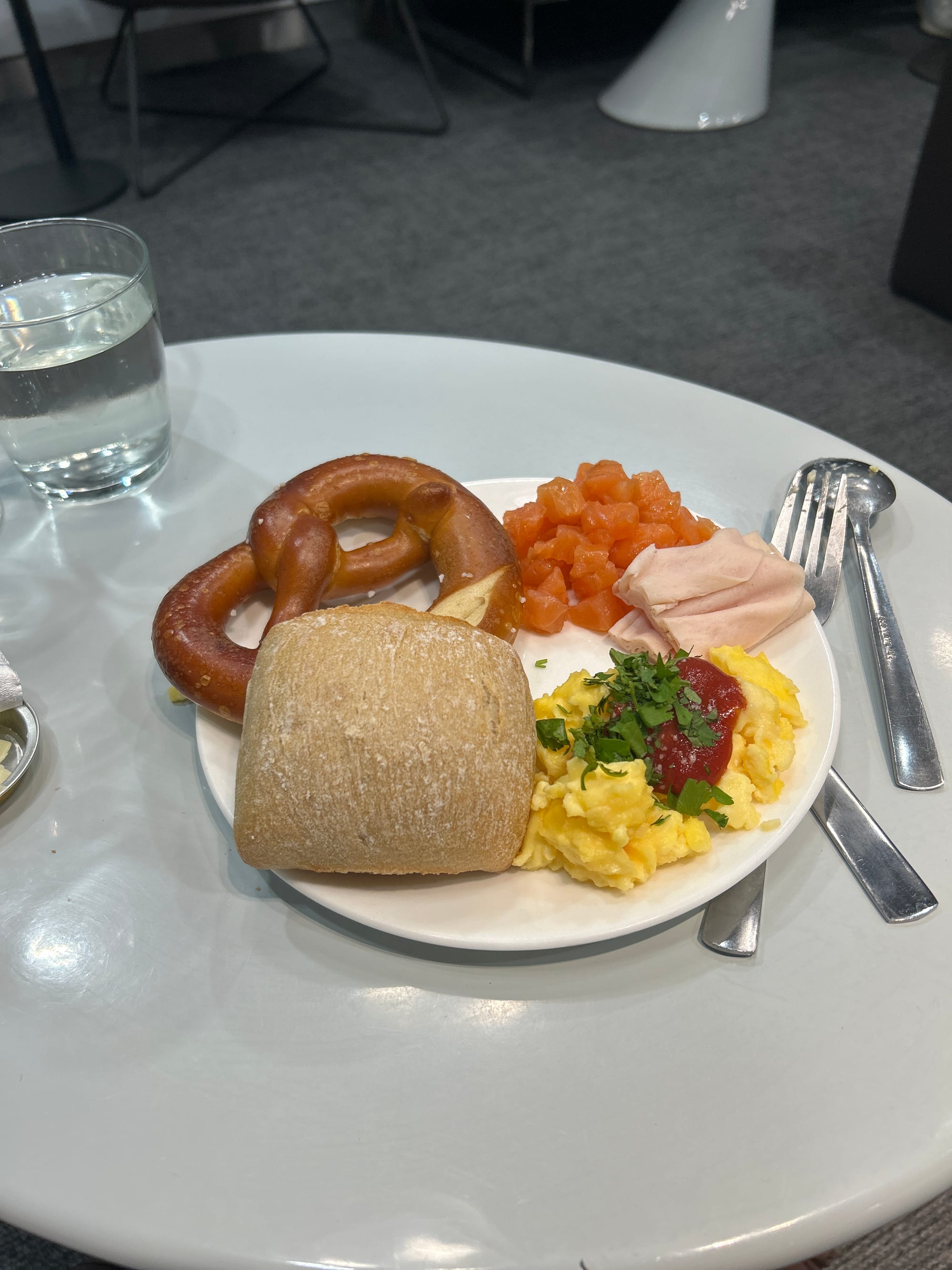 루프트한자 라운지의 가장 큰 매력인 잘 구운 빵들. 상징과도 같은 브레첼부터 폴콘브로트도 제대로 만든 느낌이지만 프랑스식 아침 식사인 크로아상과 뺑 오 쇼콜라가 메인을 장식하고 있습니다.
