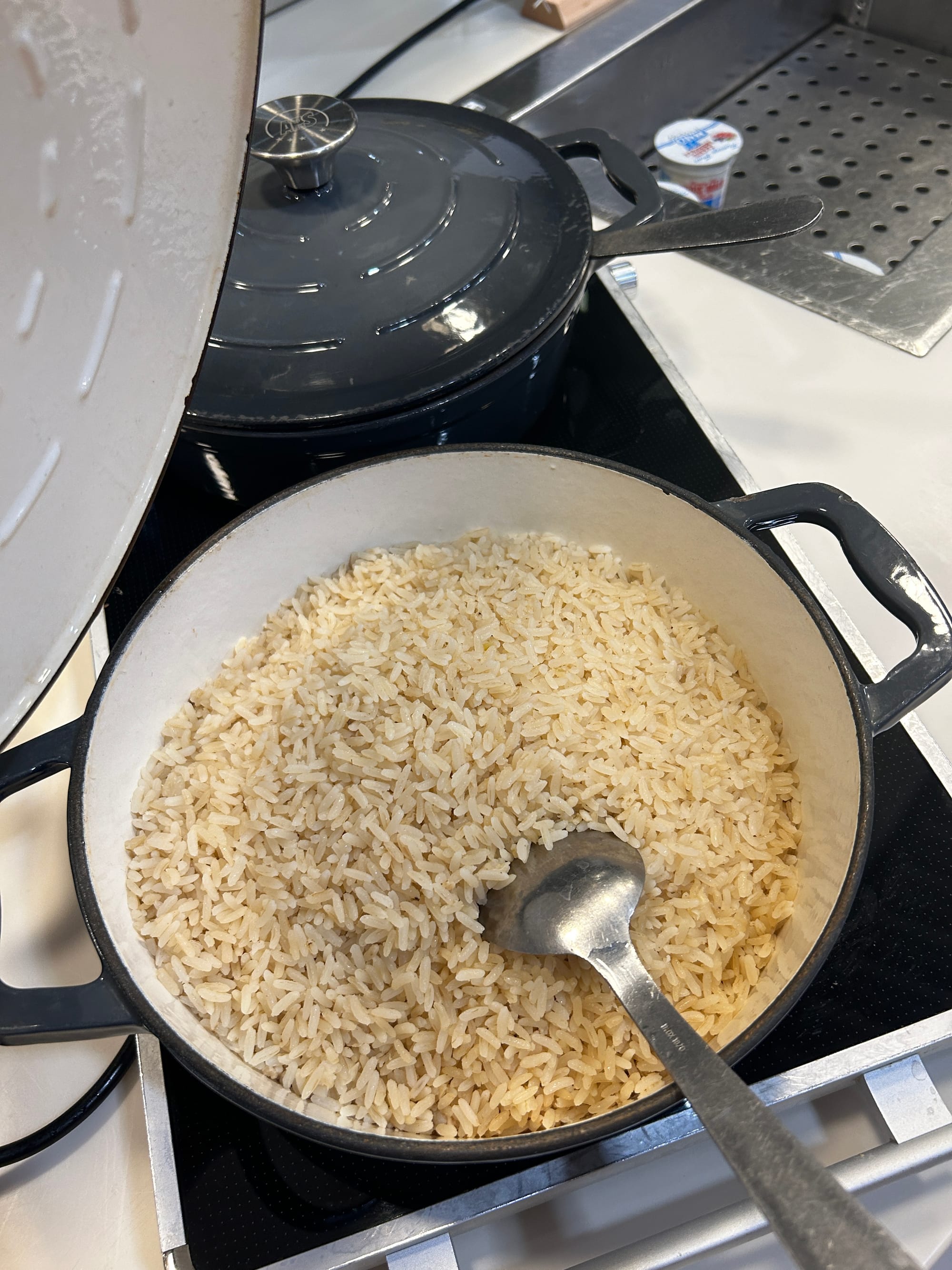 점심 때부터 제공되는 다섯 종류의 핫 푸드, 가운데 쌀밥같은 것은 정말로 쌀밥입니다. 필라프를 표방하고 있었지만 밥의 느낌입니다.