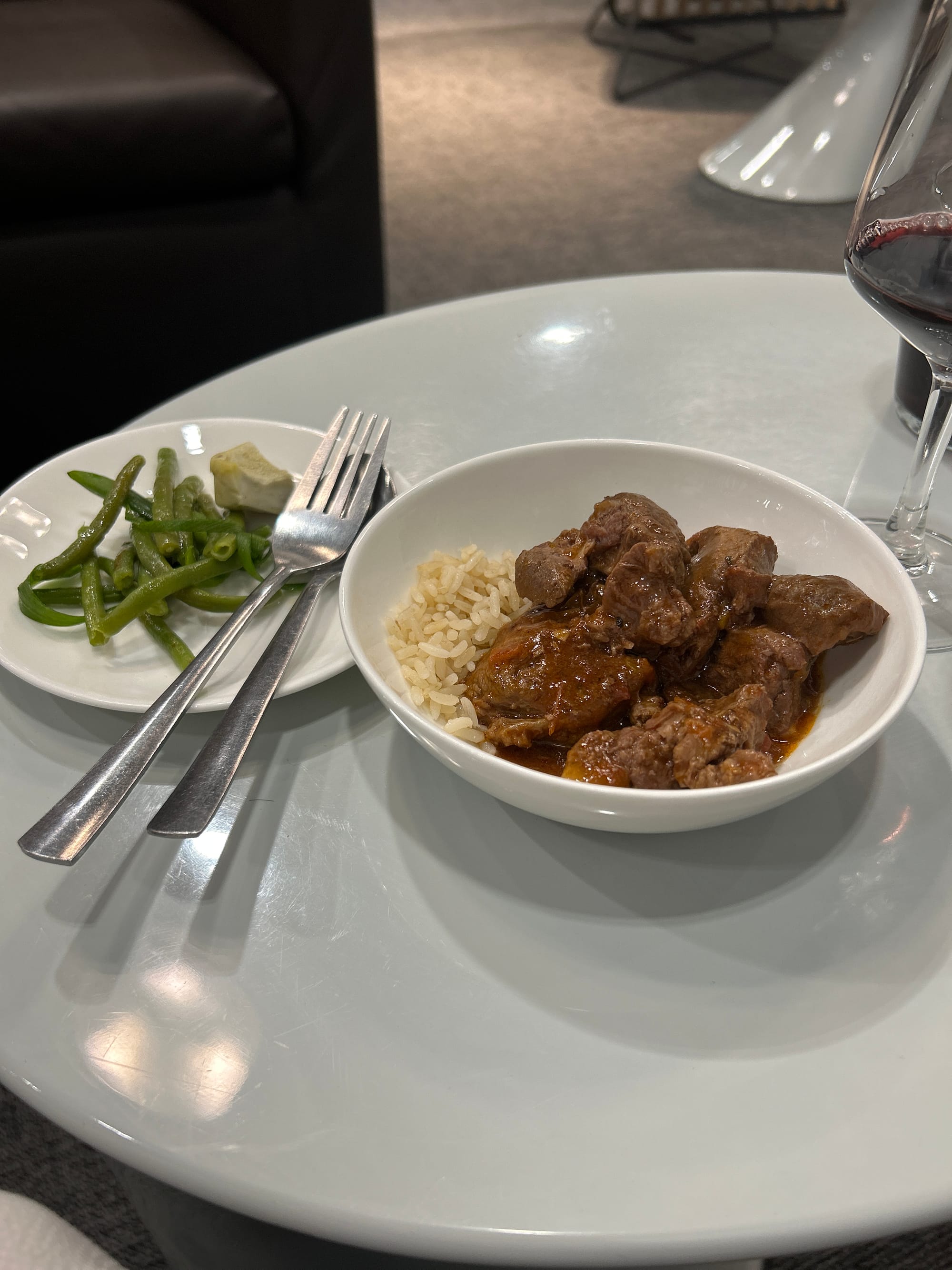 저의 선택은 굴라쉬. 스위스항공의 굴라쉬가 매우 마음에 들었기 때문에 골랐는데, 당연한 말이지만 달라도 많이 다릅니다. 토마토 넉넉한 느낌에 브레이징하듯 오래 익힌 쇠고기, 독일권의 아저씨 음식이라면 맥주에 튀김보다도 더 아저씨스러운 만족감을 선사합니다.