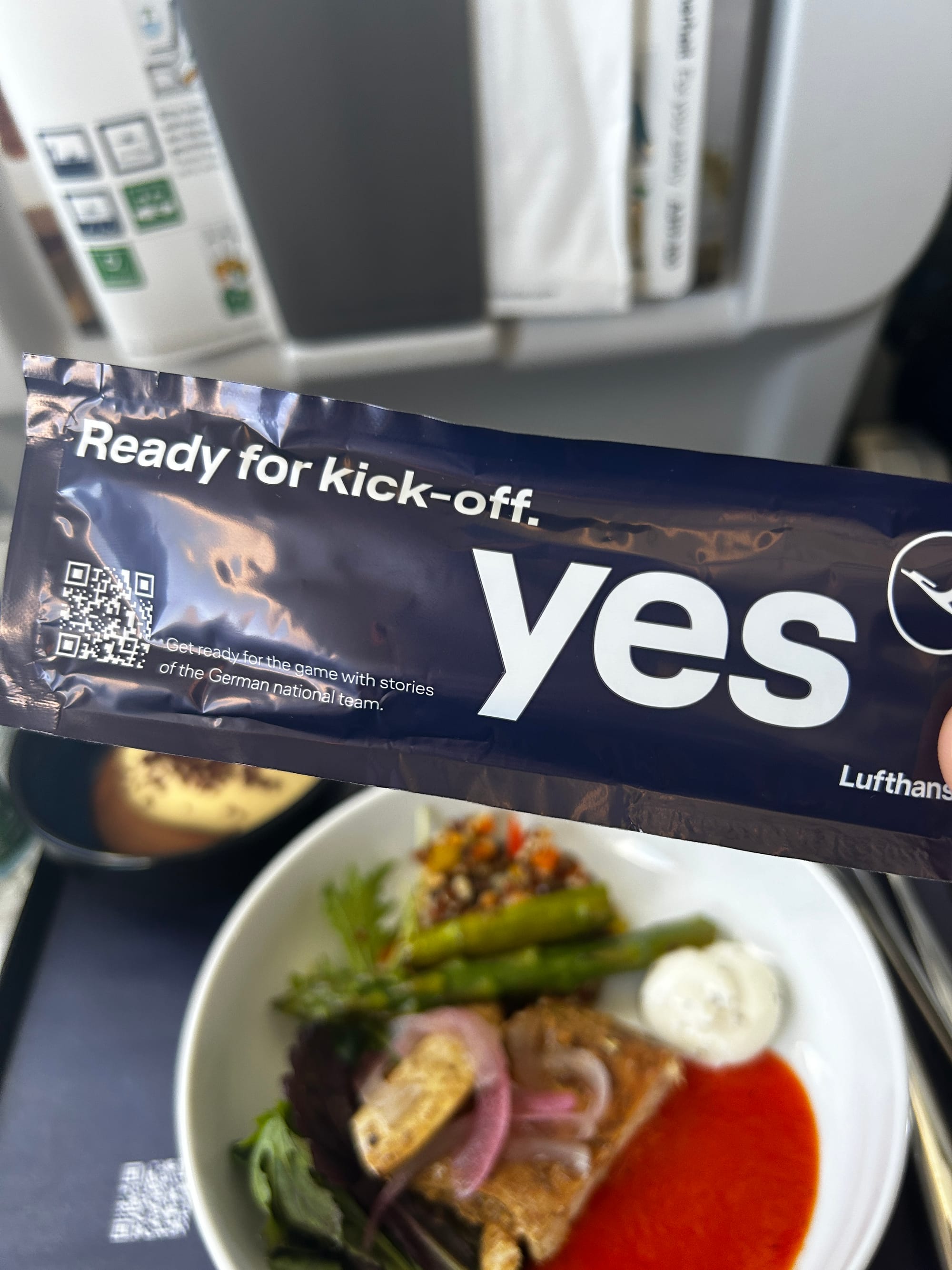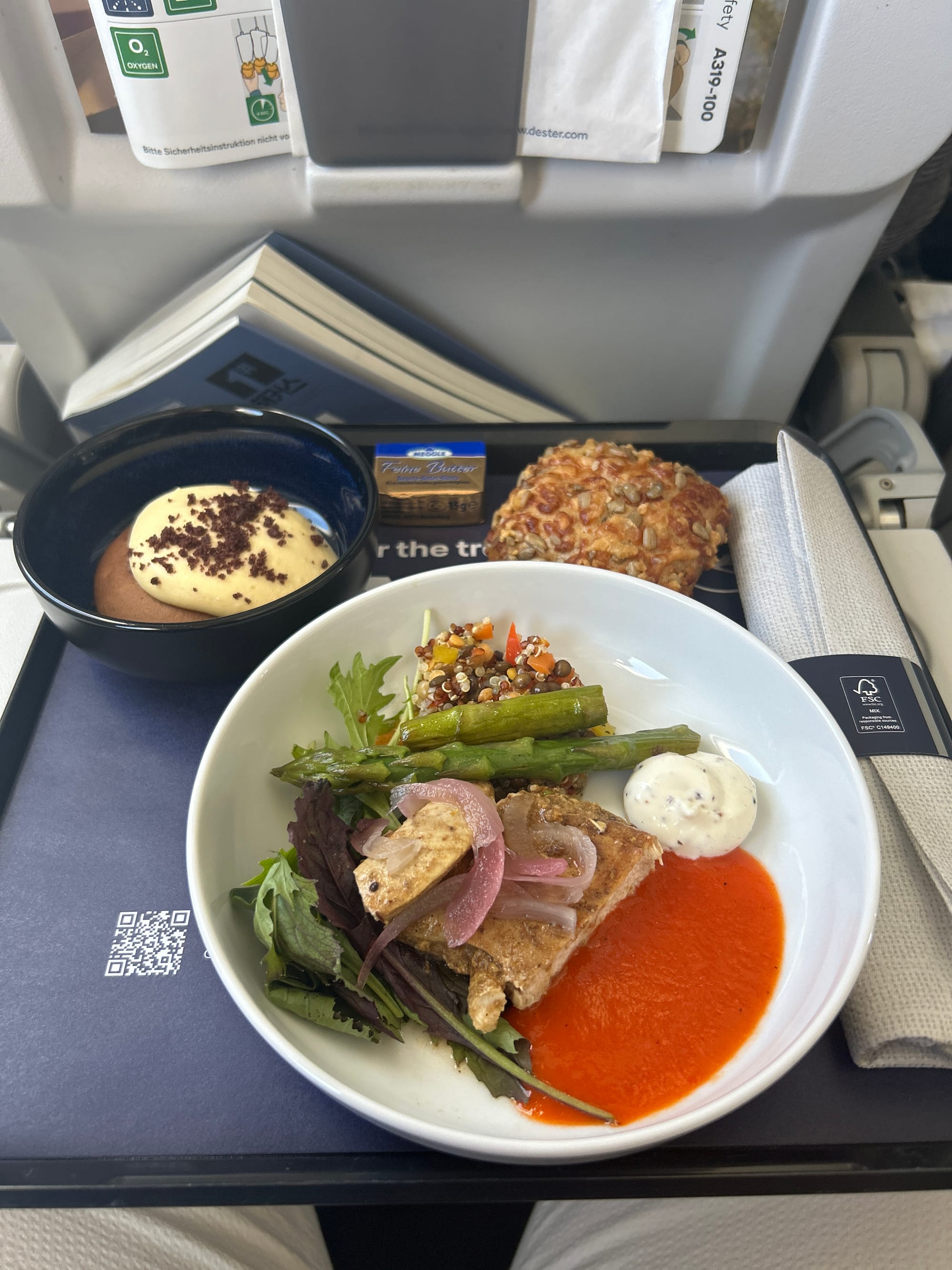 이렇게 라운지에서 한창 놀다 보니 보딩 시간이 됩니다. 이참에 루프트한자 단거리 비즈니스 기내식도 좀 보여드릴게요. 루프트한자 비즈니스 기내식은 국적기와 다르게 생각보다 노선별로, 계절별로 다양성이 있습니다. 그래서인지 1시간 남짓 가는 단거리편도 비즈니스가 생각보다 많이 팔립니다.