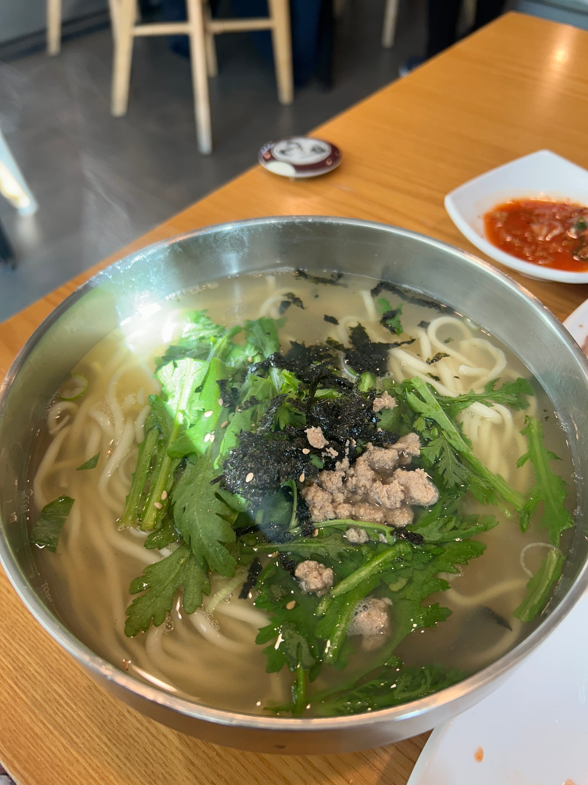 시각적으로 차이를 내는 요소는 고명이지만, 더욱 현격한 차이가 드러나는 지점은 육수다. 사실 이 가게가 처음 오픈했을 때보다는 나아졌다고 생각하지만, 여전히 옅다. 대선의 특징은 멸치의 쓴맛이 살짝 올라오기 전까지 농도 있게 우렸다면 서울은 낮은 탁도에서 보이듯 분명히 엷다. 다진 고기 고명 또한 더욱 희끗하다. 재현의 실패인가, 의도한 변화인가? 이것이 서울을 위한 맛이라면, 나는 서울에서 칼국수라는 요리를 포기해야 할지도 모른다.