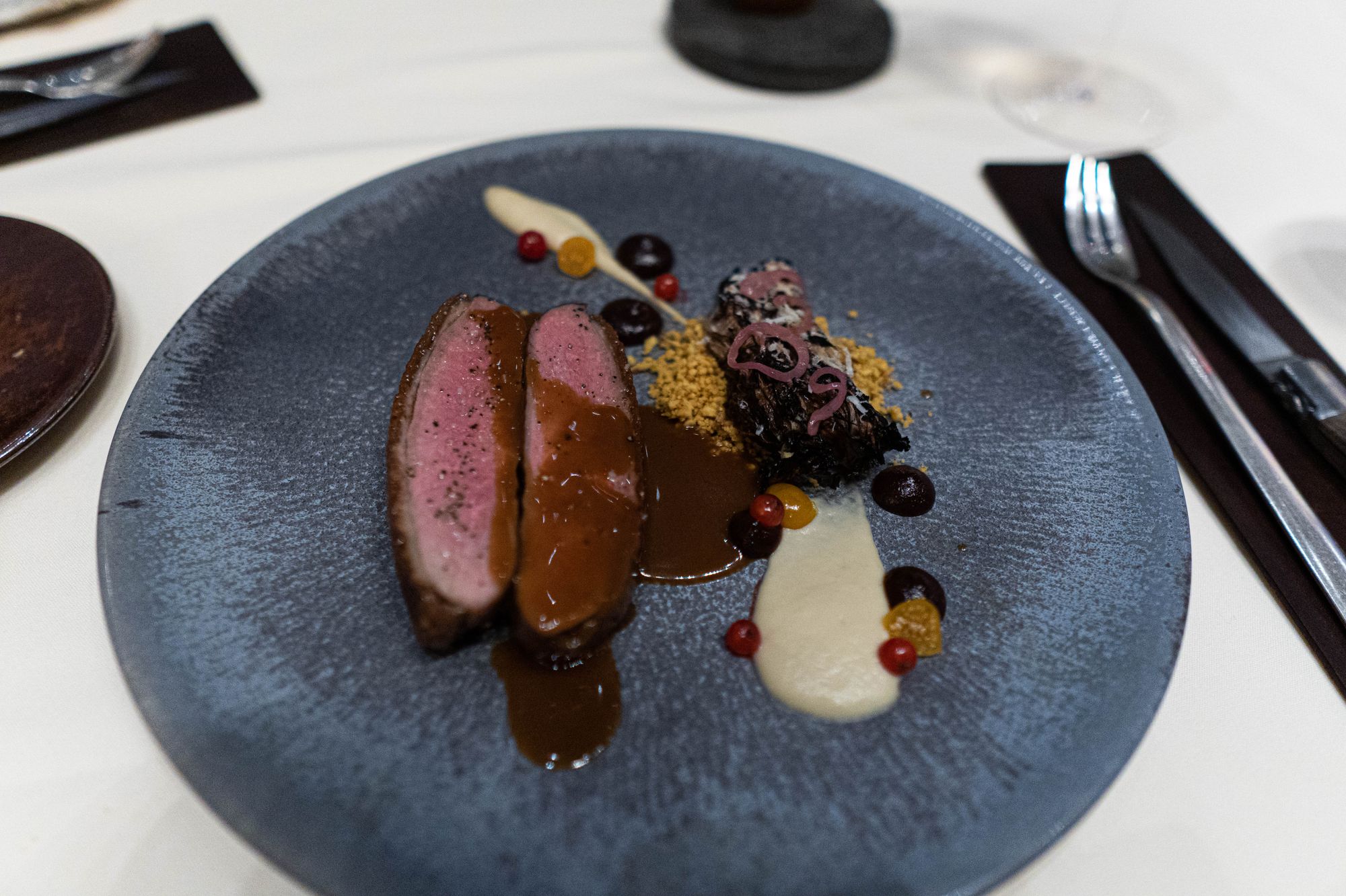 아뮤즈부터 두 번째 코스까지가 白의 요리였다면 앙트레에서는 급격히 黑, 또는 赤으로 방향을 튼다. 나머지의 구성은 항상 변하지만 짚불에 익힌 롱아일랜드 오리 가슴살은 항상 그 자리를 지키고 있는데, 조금 더 극적인 연출을 기대했지만 그렇지 않은 안전한 조리를 내놓아 조금은 실망했다. 나쁜 조리는 전혀 아니었으며, 간만에 껍질이 썩 마음에 들게 나온 오리를 만났다는 점에서 행복한 식사였긴 했지만 긴 기간 레스토랑의 핵심으로 자리잡고 있는 이유를 전부 보여주지는 못했다.