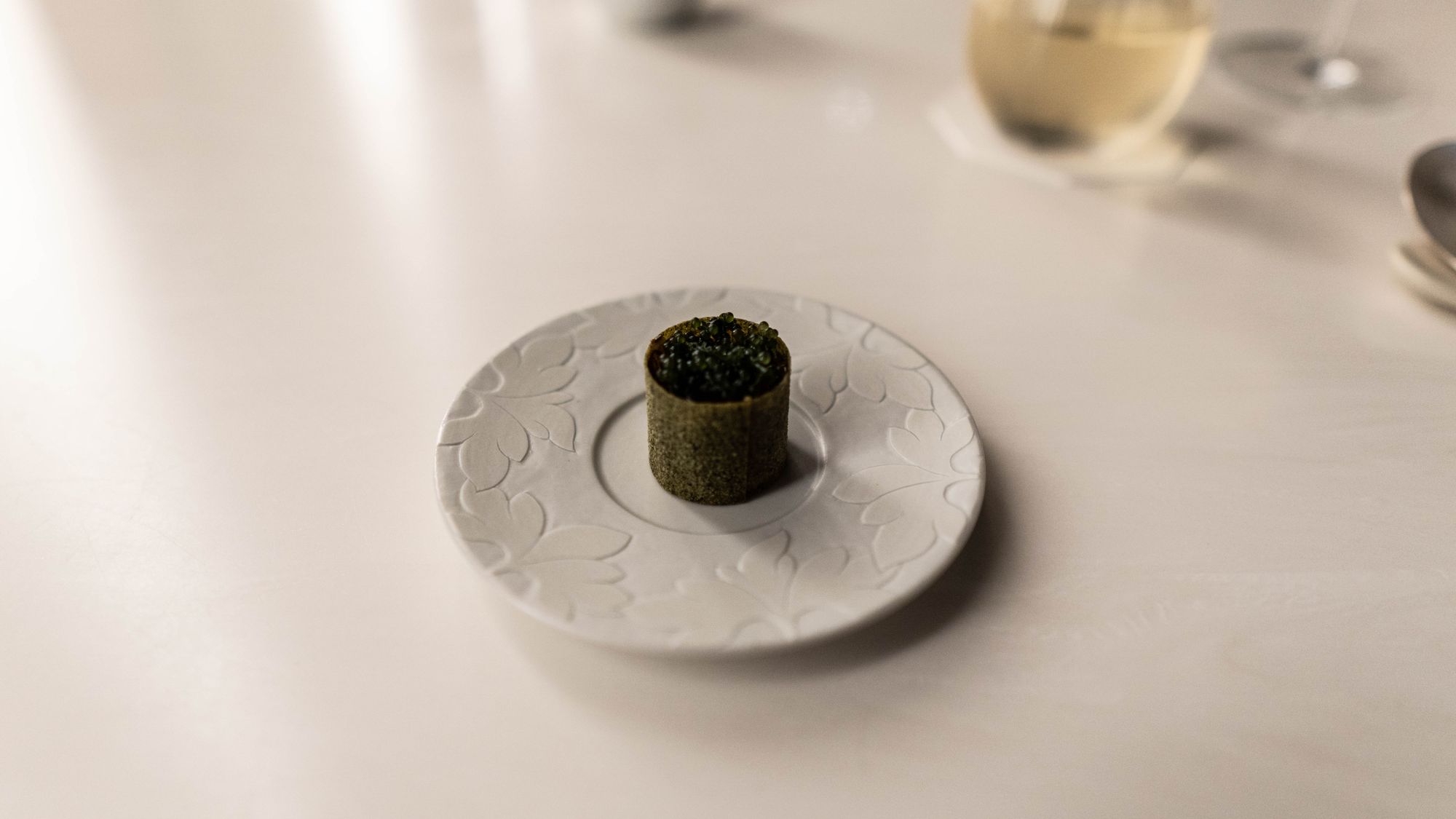 도피누아즈를 모방한 감자를 제외하면 주제는 전부 동일하지만 와송 정도를 제외하면 실행과 경험에 있어서는 차이가 있었으므로 다시 논할 이익이 있다. 기본적으로 손으로 집어먹는 오로되브르로부터 강한 영향을 받은 모습인데, 가온의 메뉴판이 가진 것처럼 재료와 향으로서의 한식에 더해 조리법으로서의 한식으로서 무엇을 보여줄 것인가라는 데 대하여 가온이 내놓은 대답은 부각이었다. 비채나의 부각은 썩 흥미를 불러오는 것이었지만 그것과는 큰 관련이 없었다. 그렇다면 무언가를 담는 틀로 이용한다는 점에서 많은 '이른바-모던-한식'에서 보여주는 도로아미타불 타르틀렛, 혹은 마키즈시의 아류가 되지는 않을까? 그런 마음이 드는 것은 숨기기 어렵다.