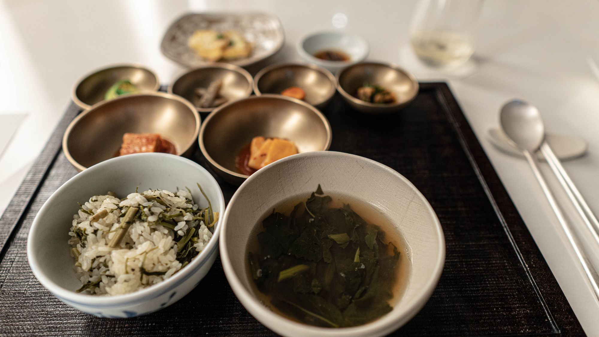 이 형식에 대해서 나는 여전히 거대한 의문을 품고 있지만 아무렴 계속되고 있다. 그러나 이렇게 지나가면 독자도 실망할 수 있으므로 짧게 다뤄본다. 첫째로는 밥과 국의 경이로운 완성도이다. 눈개승마는 분명 철이 반쯤 지난 나물임에도 강한 생명력, 즉 향을 피워내고 있었는데 정말 그에 취해도 좋을 정도였다. 특유의 쓴맛은 적당한 정도로 다스려져 밥과 멋드러지게 어우러지는 가운데, 밥의 상태 역시 밥으로서는 더할 나위 없는 정도에 이르렀다. 된장국은 육수를 뺀 것에 된장을 타지만 탁해짐이 거의 없어 마치 된장을 걸러낸 듯한, 그렇지만 된장의 맛은 걸러지지 않은 묘기를 부리고 있었다. 나물밥에 된장국, 이것만으로 이미 한식이 가야할 길은 뚜렷하게 제시되고 있었고 가온의 요리는 기본적으로 그 위에 있다는 것을 다시 확인할 수 있었다.