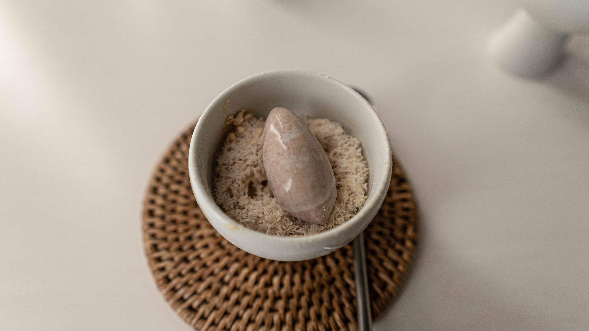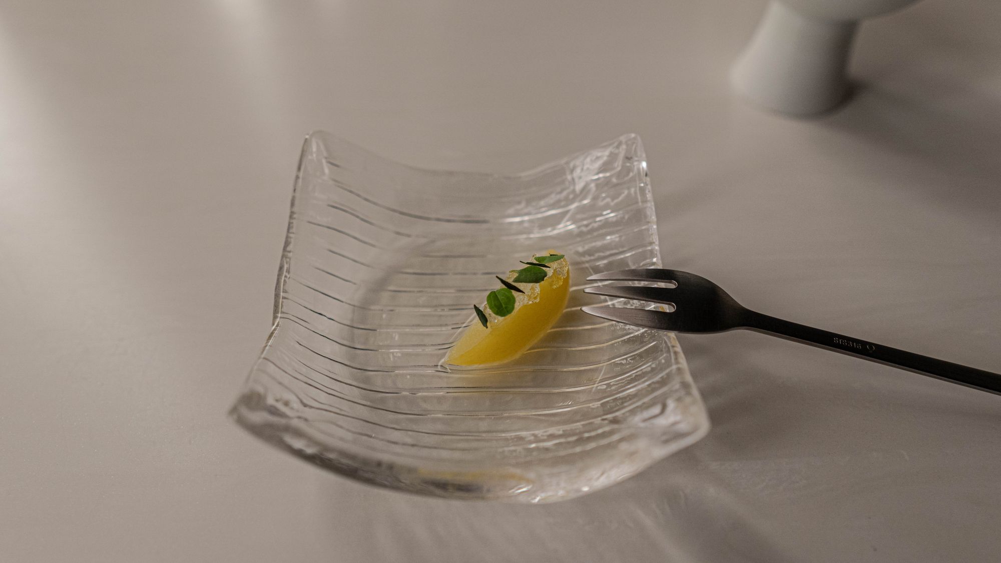 아무리 머리를 굴려도 통조림에 레퍼런스를 두고 있는 이 복숭아의 맥락은 이해하기 어려운 것이었다. 좋은 복숭아에 스테비아나 바질잎을 씹을 때의 감각이 썩 재미는 있었지만 앞선 요리들과는 너무나도 다른 지향을 보여주고 있었다. 이에 대한 평가는 감히 내리기 어려워 보류. 식사 말미에 갑자기 무가리츠가 되려고 하는가?