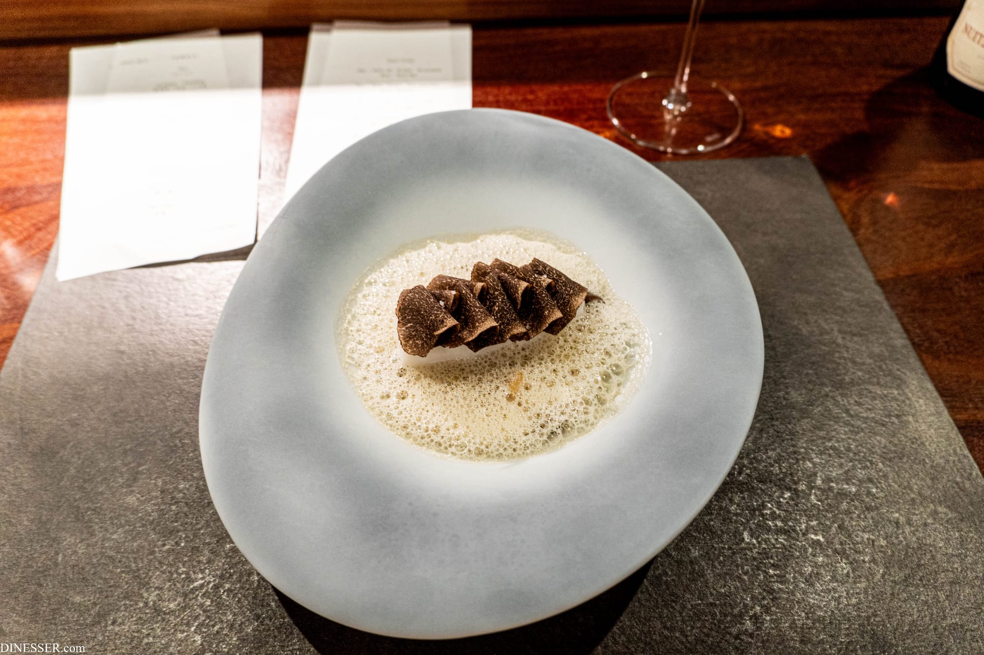 맛이 연한 요리에 블랙 트러플을 부딪혀 오는 시도는 아래에 깐 소스를 통해 완성되는데, 균형이 좋다고 생각하면서도 그렇다면 맛이 진한 재료를 쓰는 것이 통하는 길은 아닌가 하는 생각도 들었다. 이미 풀바디 와인과 그만큼 힘이 있는 요리가 몇 차례 부딪혔기 때문일까? 물론 고조되는 온도감 만큼은 좋았다. 점점 높아지며 다가오는 온도는 식사의 시계열 속에서 시간의 흐름 뿐 아니라 맥락을 쌓아가는 역할을 수행한다.