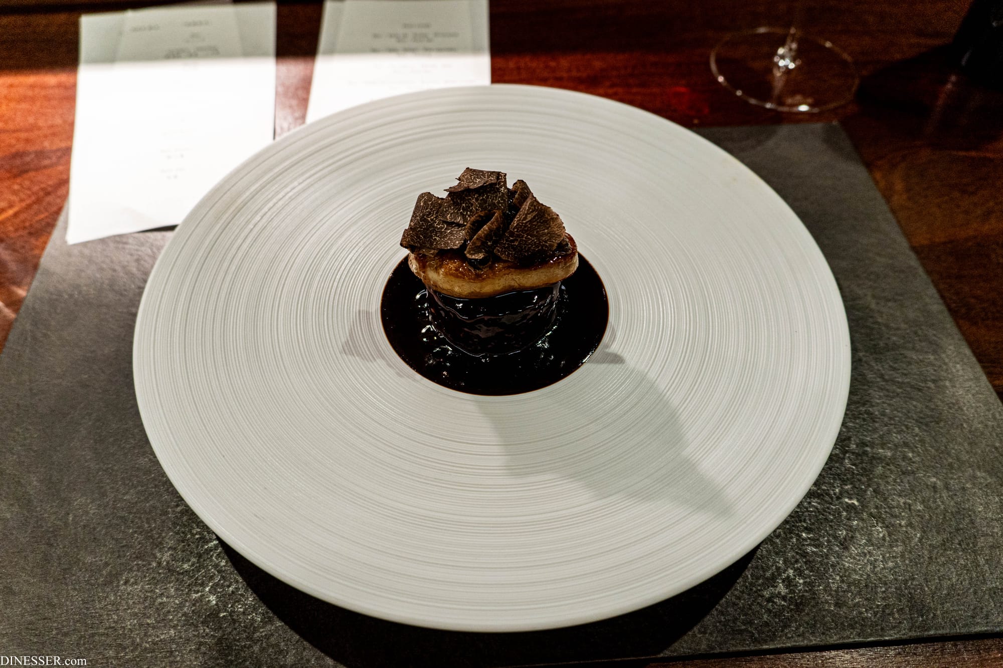 그러한 맥락이 도착하게 되는 곳, 실은 토끼의 로얄을 원했지만 와카야마의 멧돼지로 합의(서플먼트로 약 4000엔 정도가 추가된 것으로 기억한다). 멧돼지는 일반 돼지와 비교하면 마치 양고기와 같이 지방에 특유의 풍미가 베어있지만, 여름철보다는 겨울의 진미로 알려져 있다. 이는 멧돼지의 삶을 따라가면 알 수 있는데, 가을철에 땅에 떨어진 열매를 잔뜩 먹으며 지방이 한껏 두툼해지고, 겨울철에는 식물 뿌리 등으로 연명하며 동물성 먹이의 뉘앙스가 크게 줄어드는 것이 겨울의 멧돼지를 완성한다고 이해한다. 지방이 많은 부분을 엄선하여 천천히 오래 익혀 만든 멧돼지의 시베는 리에브르 알라 로얄을 꿈꾸던 겨울철 나의 욕심을 거의 충족시켜 주었다. 살짝 모자란 지방은 포트 와인을 살짝 더해 익힌 푸아 그라와 트러플로 마치 로시니처럼 완성한, 궁극의 쾌락. 부르고뉴에 대한 사랑도 좋지만 기왕 이렇게 된 결말이라면 좋은 보르도로 천추의 무게를 느껴보는 것도 좋았으리라.
