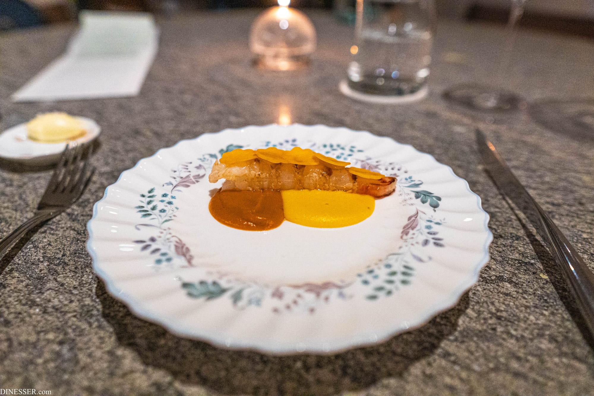 청명한 매운맛을 주제로 하는 이 요리에서는 어쩌면 단백질의 무의미까지 느꼈다. 물론 새우의 단맛도 분명 좋은 성질을 지니고 있지만, 이 요리에서는 더욱 급진적이지 못한 데 데한 아쉬움까지 느낄 수 있었다. 이 요리의 주인공은 새우처럼 보이지만 사실은 고추와 호박이다. 찬바람 아래 단단히 굳어진 단맛과 따사로운 햇빛이 교차하는 듯한 감각, 지고의 사치스러움이 스며들었다.