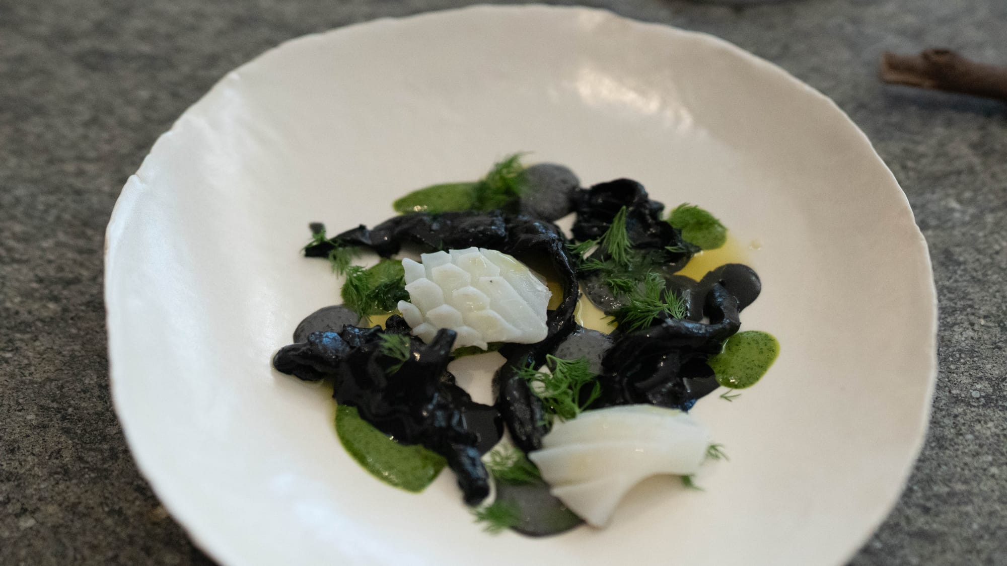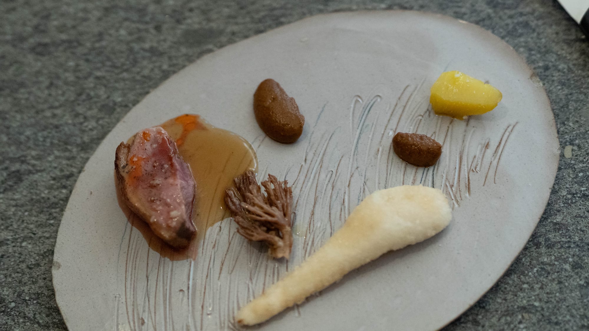 덧없음: 국내에 있는 시간이 짧아지면서 자주 발걸음을 하는 곳은 극단적으로 줄어들었는데, 그 중 하나가 이곳인 이유라면 이곳이 지닌 덧없음-ephemerality- 때문이다. 하나는 요리 자체가 가진 덧없음이다. 확고한 의견 덕분에, 순간적으로만 존재하다 사라지는 질감이나 맛의 레이어를 경험할 수 있다. 습관적으로 뿌려내는 소금과 후추는 이곳에 없다. 오리 위의 투명한 소스, 잠깐 공기를 마셔 부풀어 오른 소스에는 강한 주관이 깃들어 있다. 이러한 미시적 덧없음 외에도, 계절과 시간의 풍파를 맞아가며 등장하고 사라지는 요리의 덧없음도 존재한다. 엘 불리는 아니기에 자세한 기록으로 남아 있지는 않으리라 생각하지만, 새롭게 등장하고 또 사라지는 영감의 원천을 마주하는 재미가 있다. 감히 계속적 존재를 상정하지 않기에 곧잘 사라지지만, 그렇게 순간의 주인공이자 지나가는 과거로 살아가는 것이 인간 삶의 재미가 아닌가? 마치 예니 에르펜베크의 정원사가 되는 것처럼, 이곳의 요리는 덧없음을 느끼도록 한다.
