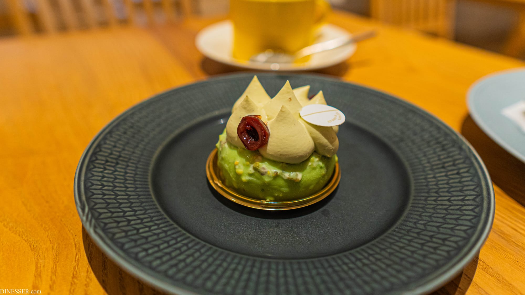 사워 체리의 이름을 딴 듯한 몽모랑시는 두터운 피스타치오 속 그리오트의 강한 신맛으로 대비의 경험을 제공하는데, 피스타치오의 지방이 품은 고소함에서 신맛으로 꺾는 흐름이 즐거웠다. 상단의 크림에서 먼저 피스타치오의 향과 지방의 고소함을, 프랄리네에서 초콜릿으로 이어지는 단맛과 부수어 뭉개는 질감을, 마지막으로 절인 체리로 집중되는 이목. 특히 칭찬하고 싶은 점은 작은 케이크이기 때문에 가능하다고 느껴지는 강렬한 인상이다. 집중도 있는 맛이 선명한 인상을 남기면서 부담스럽다는 생각이 들기 전에 끝난다. 먹기보다는 맛볼 때 빛나는 구성.