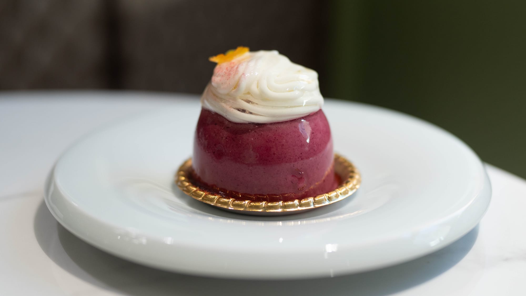 향이 순식간에 여러 겹으로 밀어닥치는데 반해 맛은 카시스의 과실 이외에는 썩 평면적인데, 제과에서 술을 다루는 방식의 특성상 쓴맛을 연출하기 어려운 점이 있다는 것을 이해하더라도 기왕에 칵테일을 바탕으로 다루자면 질감이나 맛의 구성 어느 한 측면에는 조금 더 두터움이 있었어야 했다는 감상이 남아 있다. 카시스 우롱처럼 편하게 마시는 카시스 음료에도 우롱차의 쓴맛이 지탱하는 부분이 분명히 있다. 이 제과에서는 그것의 존재감이 충분하지 않았다. 음료를 요구하기 위한 설정이라면(가끔 그런 것이 있다. 예컨대 안젤리나의 몽블랑) 성공적이라 하겠지만 그것은 과한 변호가 되리라 본다.