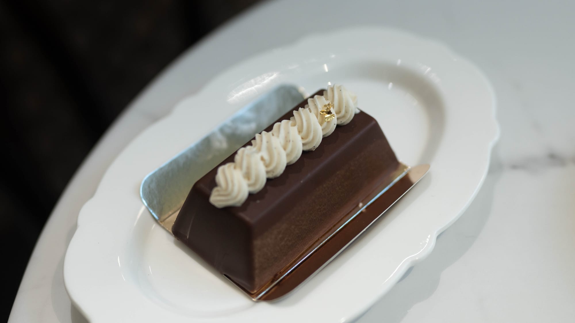 소금을 뿌려 마무리한 버전에서 샹티 유사의 크림으로 바뀌었는데, 큰 틀에서 맥락은 유지되고 있다. 초콜릿의 긴 호흡에서 프랄린과 비스퀴가 치감과 약간의 짠맛을 더한다. 그렇지만 이름에서는 위스키라는 단어가 가장 앞을 차지하고 있는데, 한국어의 어순을 감안하여 위스키와 소금이 초코를 꾸며주는 말이 되어야겠지만 인식 속에서는 불어처럼 위스키가 주인공이 되는 것이 아닌가 하는 생각을 들게 한다. 아무래도 그렇지 않은 과자와 구분할 수 있는 가장 큰 특징일 테니.