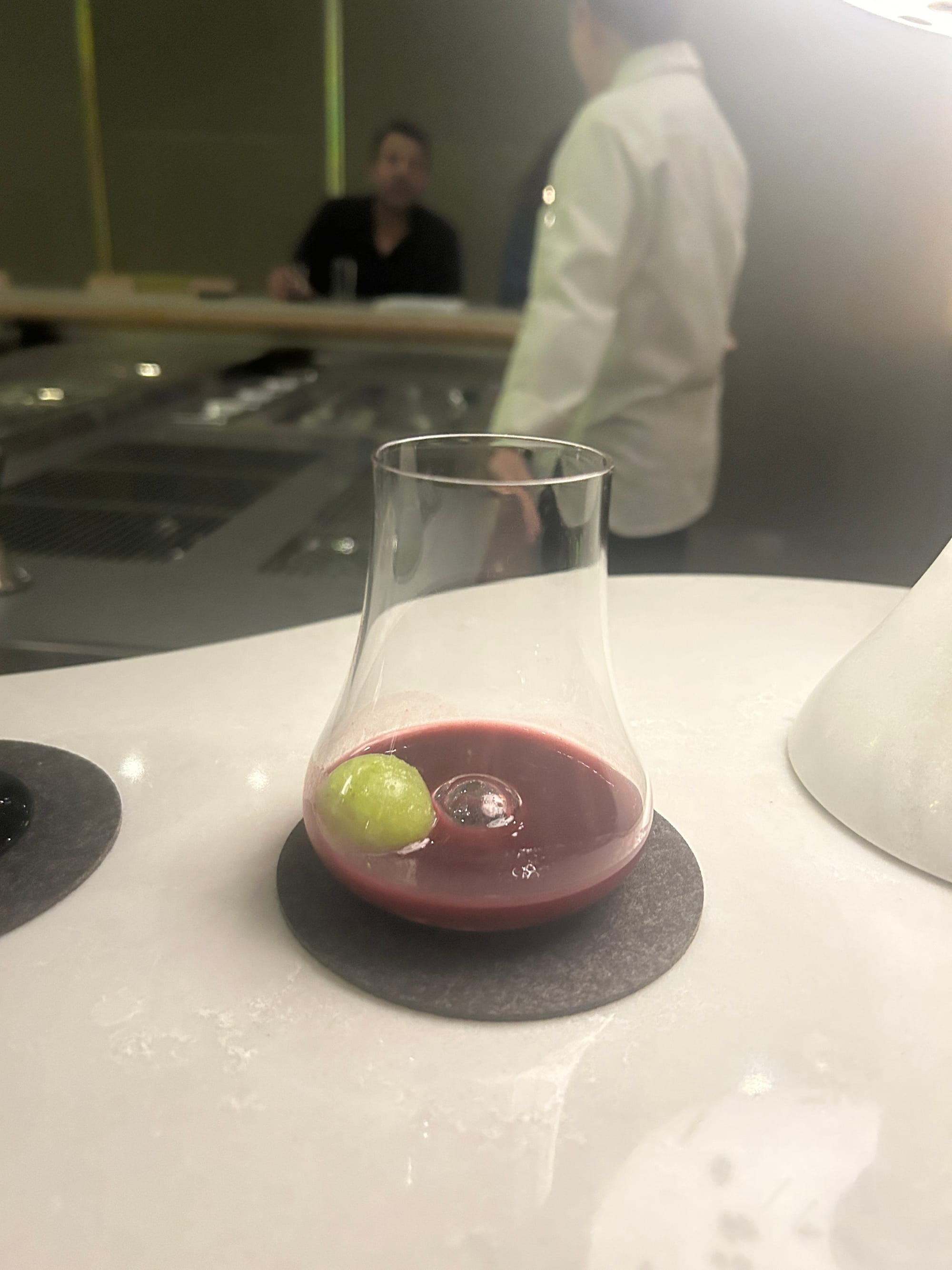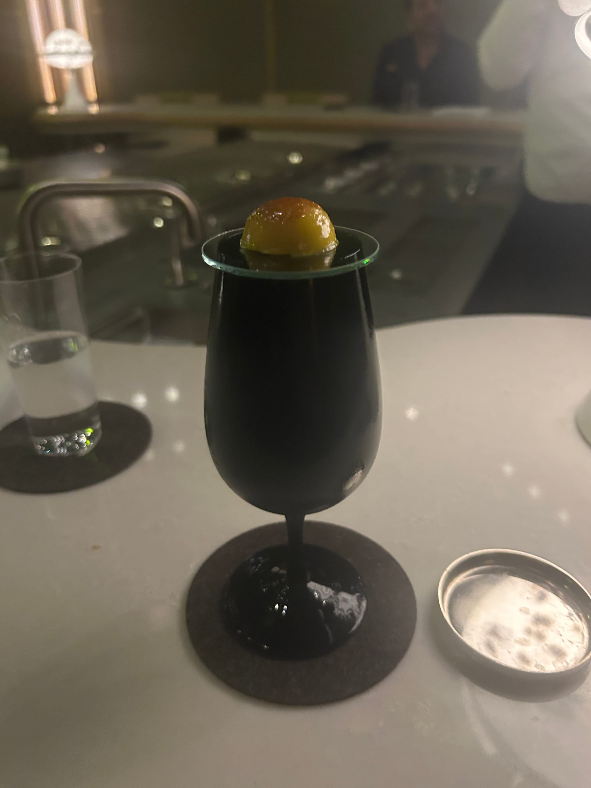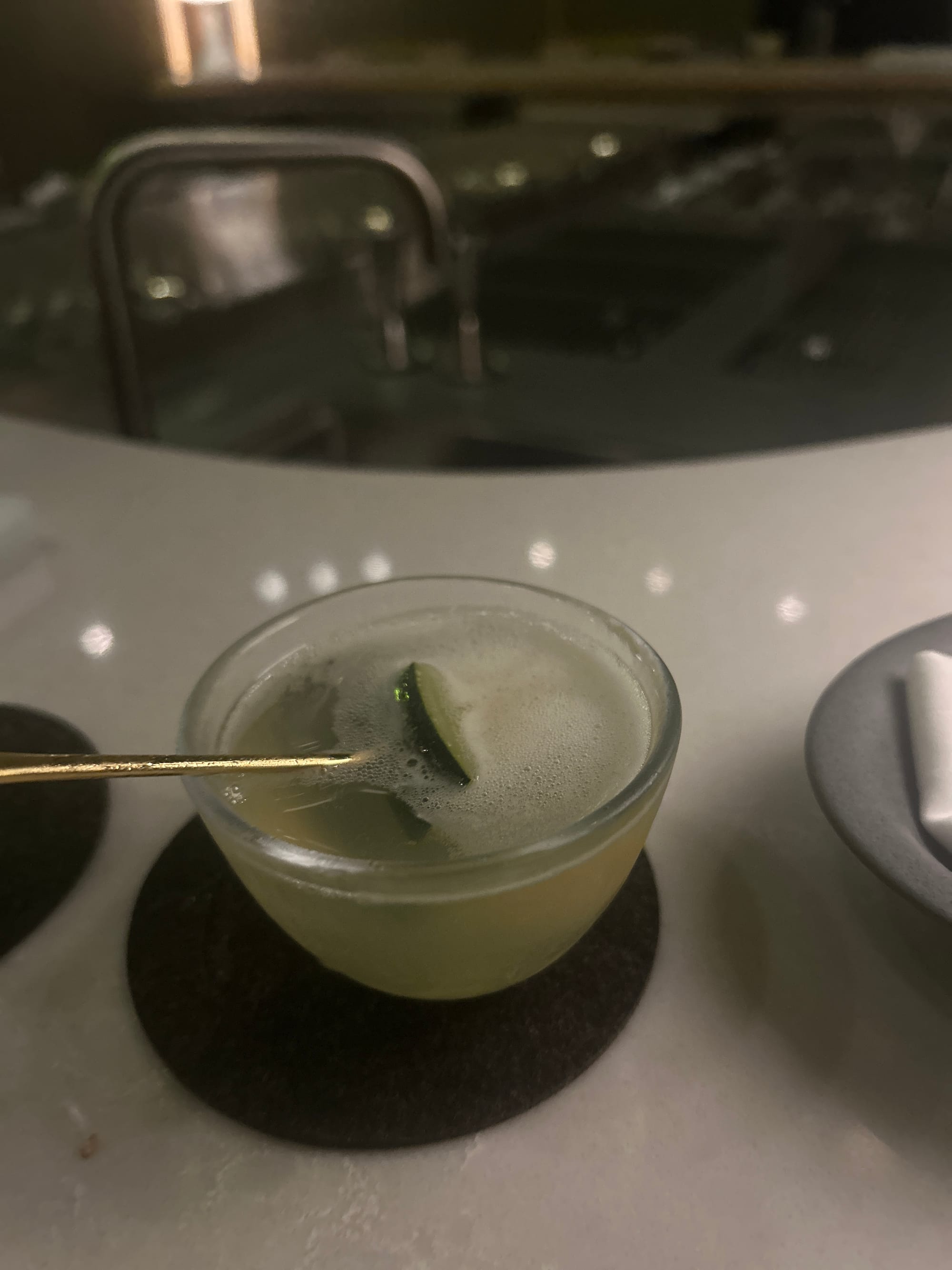 전반적인 구성의 경우, 여름이다보니 주로 과채의 계절성을 주제로 한 것들이 많았고, 달리 말해 칵테일이라는 주류 제조의 기법이나 증류나 숙성으로 얻는 증류주 고유의 특징을 적극적으로 이용한 것이 적어 근래에 흔하고 또 사랑받는 것들의 인상이지만, 사람들이 술에 돈을 쓴다는 것을 제외하면 왜 액체, 술의 형태여야 하는가를 충분히 설득하지 못하는 지점도 분명히 있다. 그럼에도 몇몇 빛나는 지점에서는 과연 서울에서 포 시즌스 호텔의 지하에서만 가능한 것이 있다는 느낌을 준다. 예컨대 푸아 그라와 컨디먼트를 주제로 한 경험이 그렇다. 초당옥수수를 사용한 칵테일의 경우 요리에서는 천편일률적인 모습을 보이는 문제적 재료가 멋드러진 단맛을 드러내고, 짜고 남은 낟알은 옥수수다움을 간직하고 있어 주방에서보다 그 존재의의를 잘 느낄 수 있었다.