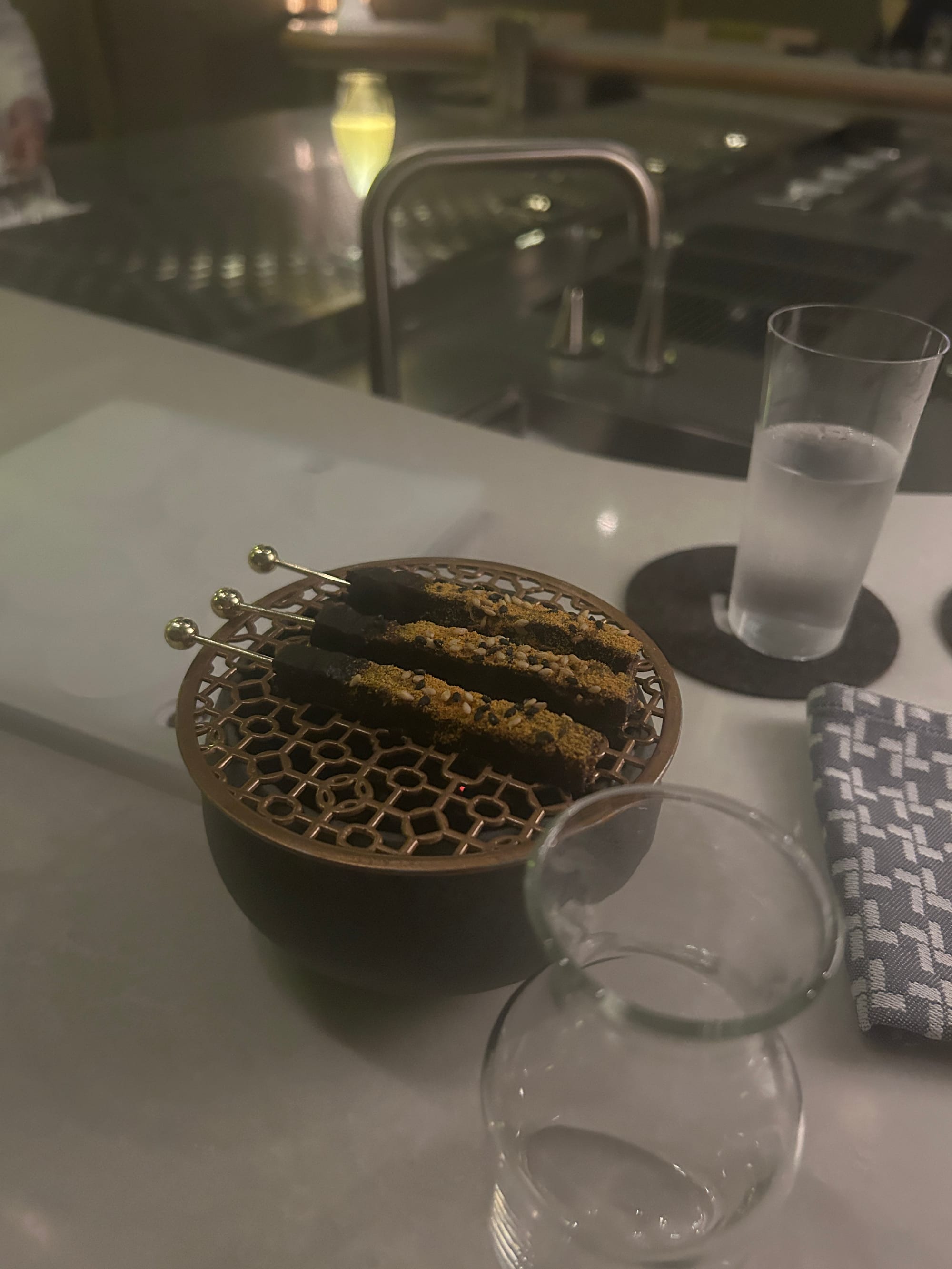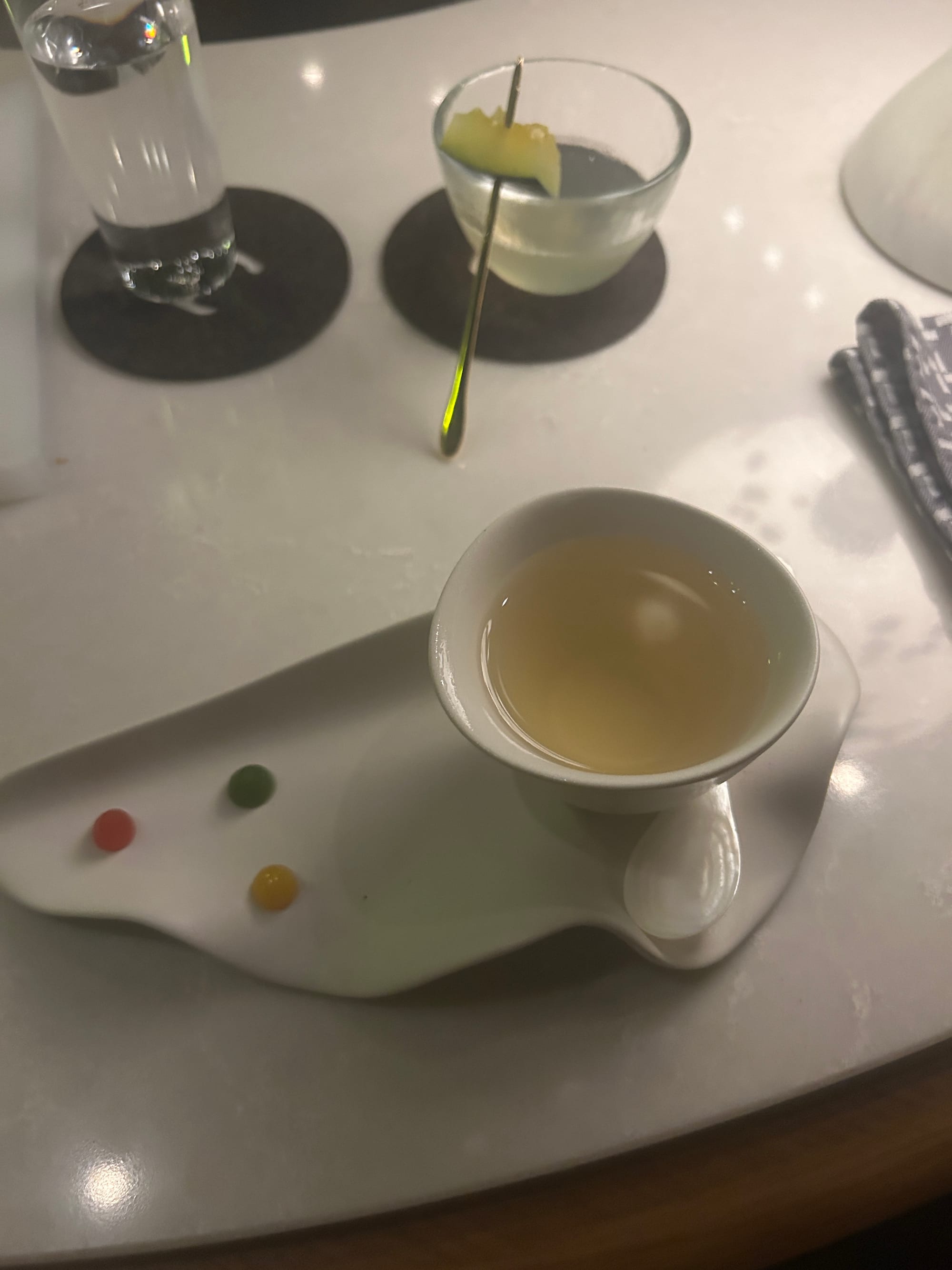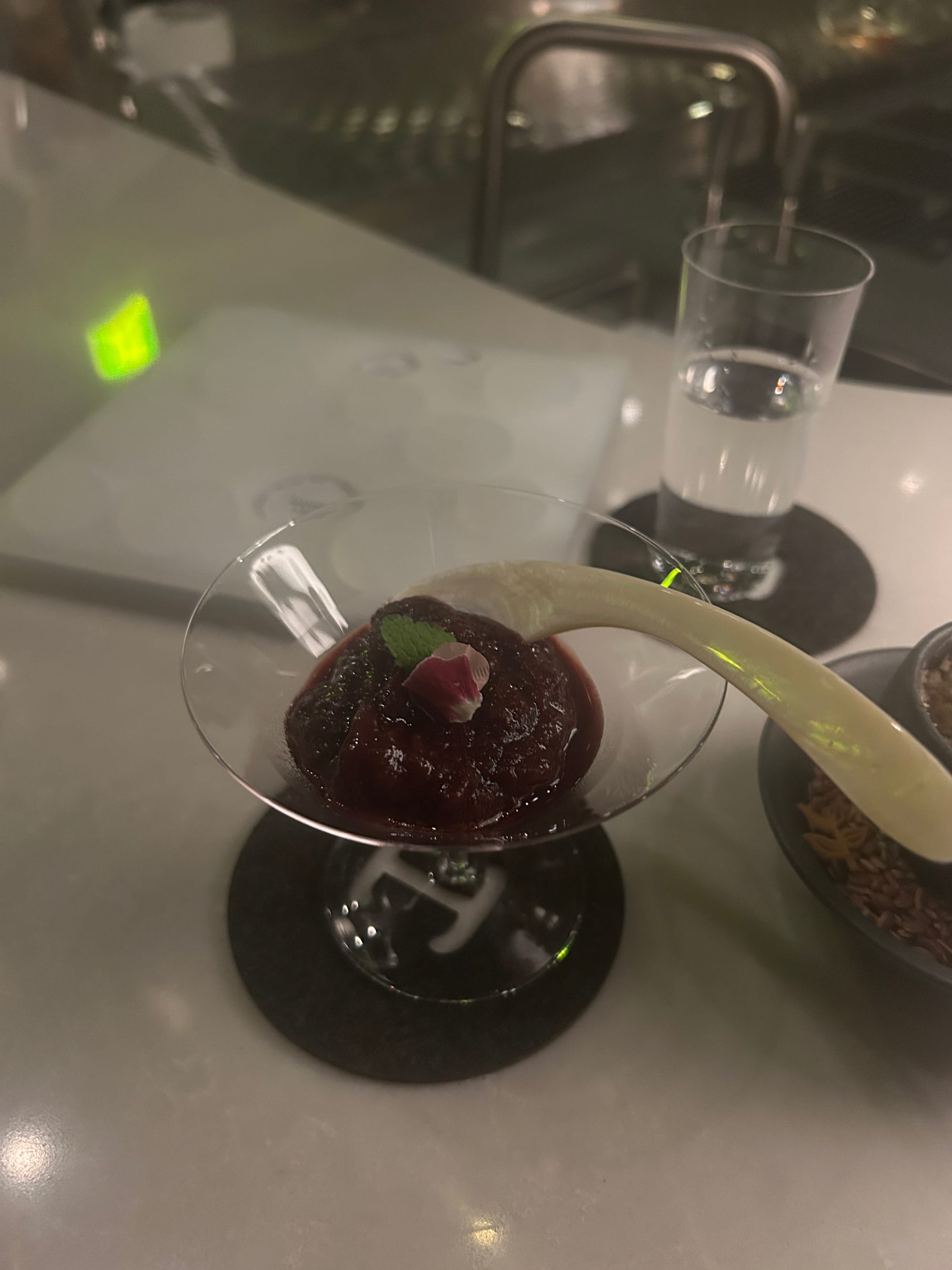 전반적인 구성의 경우, 여름이다보니 주로 과채의 계절성을 주제로 한 것들이 많았고, 달리 말해 칵테일이라는 주류 제조의 기법이나 증류나 숙성으로 얻는 증류주 고유의 특징을 적극적으로 이용한 것이 적어 근래에 흔하고 또 사랑받는 것들의 인상이지만, 사람들이 술에 돈을 쓴다는 것을 제외하면 왜 액체, 술의 형태여야 하는가를 충분히 설득하지 못하는 지점도 분명히 있다. 그럼에도 몇몇 빛나는 지점에서는 과연 서울에서 포 시즌스 호텔의 지하에서만 가능한 것이 있다는 느낌을 준다. 예컨대 푸아 그라와 컨디먼트를 주제로 한 경험이 그렇다. 초당옥수수를 사용한 칵테일의 경우 요리에서는 천편일률적인 모습을 보이는 문제적 재료가 멋드러진 단맛을 드러내고, 짜고 남은 낟알은 옥수수다움을 간직하고 있어 주방에서보다 그 존재의의를 잘 느낄 수 있었다.