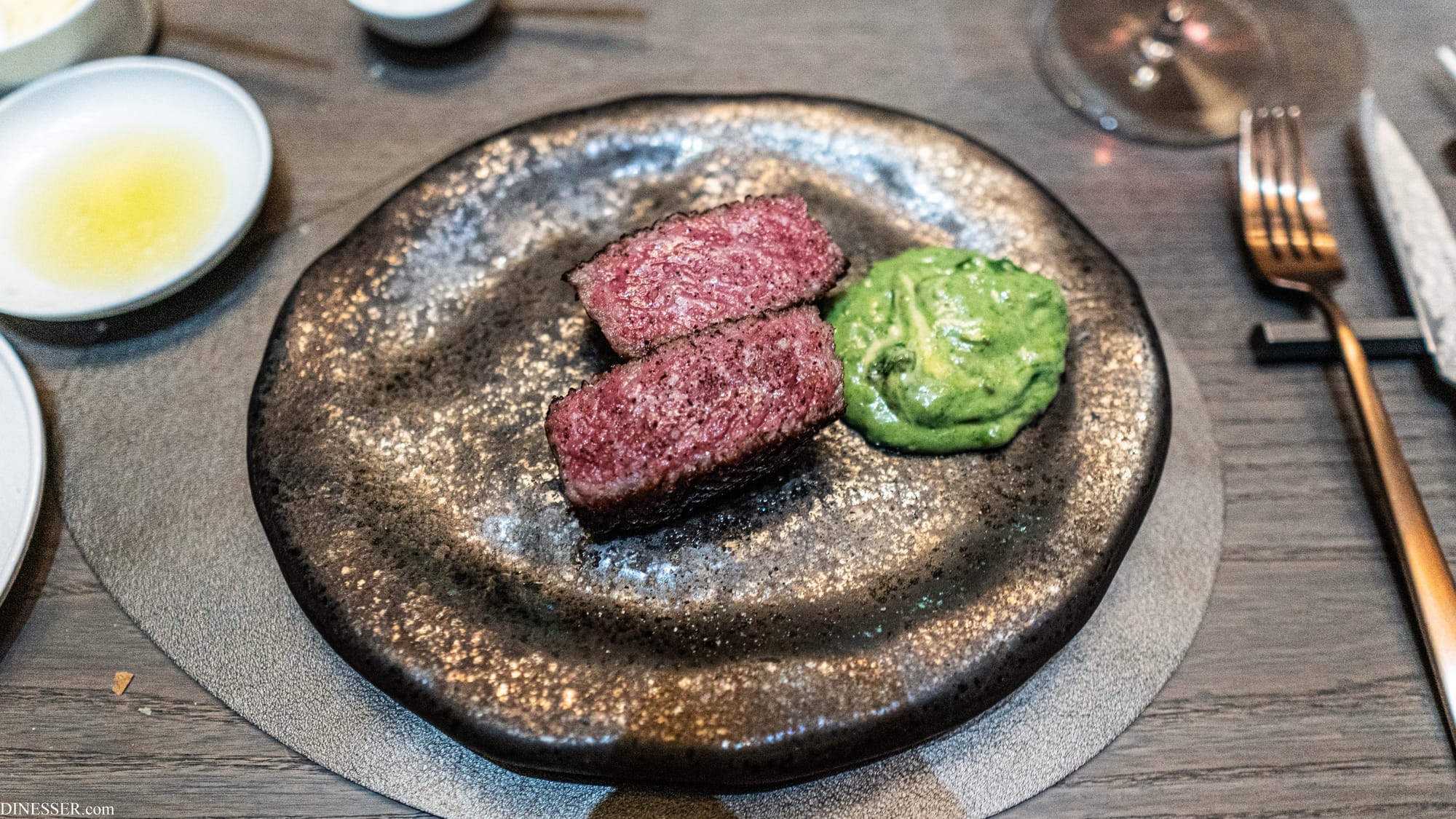 플라의 선택지는 그 날의 생선 아니면 쇠고기밖에 없다는 점에서 완성된 레스토랑보다는 가벼운 공간을 추구하는 맥락이 이어지는데, 그 중에서도 와규의 원형이라고 할 수 있는 타지마규 중에서도 타지마구로를 택했다. 생선으로 가지 않은 이유는 여러 소스를 고를 수 있는 와중 쇠고기 구이에 베아르네즈를 곁들일 수 있는 옵션이 있었기 때문. 오늘날에는 20세기풍 식당에서나 볼 수 있는 궁합이 되었지만 본래 베아르네즈가 프랑스 이외의 지역에서 인기를 끈 데에는 특유의 신맛과 화사함이 단순한 요리와 훌륭히 어울렸기 때문 아닌가? 지방의 과잉이라고 할 수 있는 와규-한우 스타일이라면 베아르네즈가 할 수 있는 일은 더욱 많을 것이다.