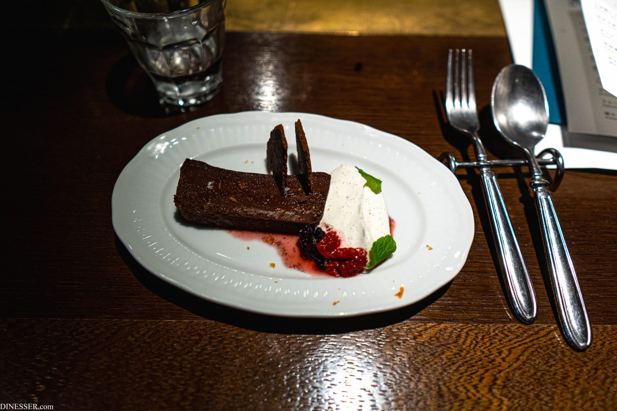 르 비스트로 데 블루의 비둘기는, 이러한 비둘기의 왕도를 제대로 걷고 있었다. 결국 작기 때문에 비둘기는 닭과 달리 부분을 해체해서 조리하기 어렵다. 다리 정도만을 분리하여 따로 익히는 것이 통상적이다. 르 비스트로 데 블루의 요리는 고전적인 길에서 벗어나지 않되 작은 뼈를 둘러싼 껍질 부분에 하이라이트를 주어 한 그릇의 즐거움을 담아냈다. 특별히 숨길 것도, 장식할 것도 없는 투박한 요리이지만 재료 그 자체가 가지는 아름다움으로 화려하게 빛났다. 두터운 껍질이 보호하는 아래 부드러움만을 간직한 가금류의 가슴살과 헤이즐넛이나 호두를 연상케 하는 껍질의 지방이 드러내는 조화는 공장식 축산업이 지배하는 세계 속에서 이러한 산업이 존속하는 이유를 보여준다.