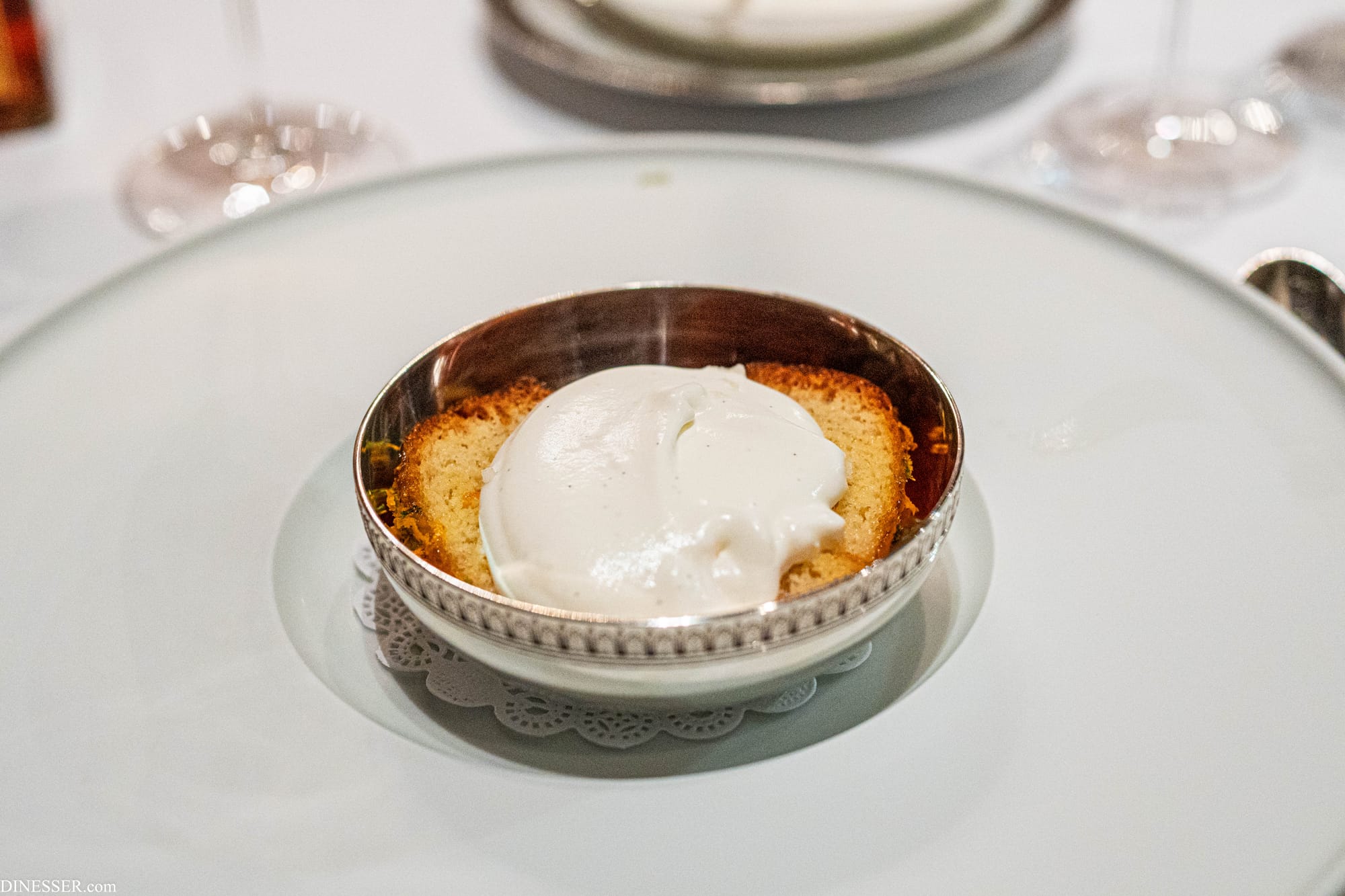 뒤카스 방식으로 담그는 시럽은 시트러스의 느낌을 강하게 잡고, 럼을 따로 빼서 알코올의 느낌을 그대로 살리는 방식이다. 단순히 럼을 비싼 것으로 바꾸고 병을 들이미는 것이 전부인 방식이 아니다. 애초에 바바 오 럼은 그 시럽에 푹 적셔 젖어버린 질감과 강한 시럽의 맛, 그리고 그것을 감당하게 만드는 두터운 크림의 균형이 있고 그 안에서 다시 시트러스, 바닐라, 럼이 켜켜이 쌓여 향의 일례를 구성해야 한다. 레자미의 바바오럼은 시럽의 시트러스향을 강하게 뽑아내고, 거기에 맞설 수준으로 오래 숙성한 럼 아그리꼴을 맞대는 것으로 올바른 방향으로 나아간다. 서울에서 비슷한 방식을 사용하는 곳에서는 성공하지 못했다는 것을 생각하면, 어쩌면 넉넉한 사정이, 혹은 섬세한 고려가 존재한다.