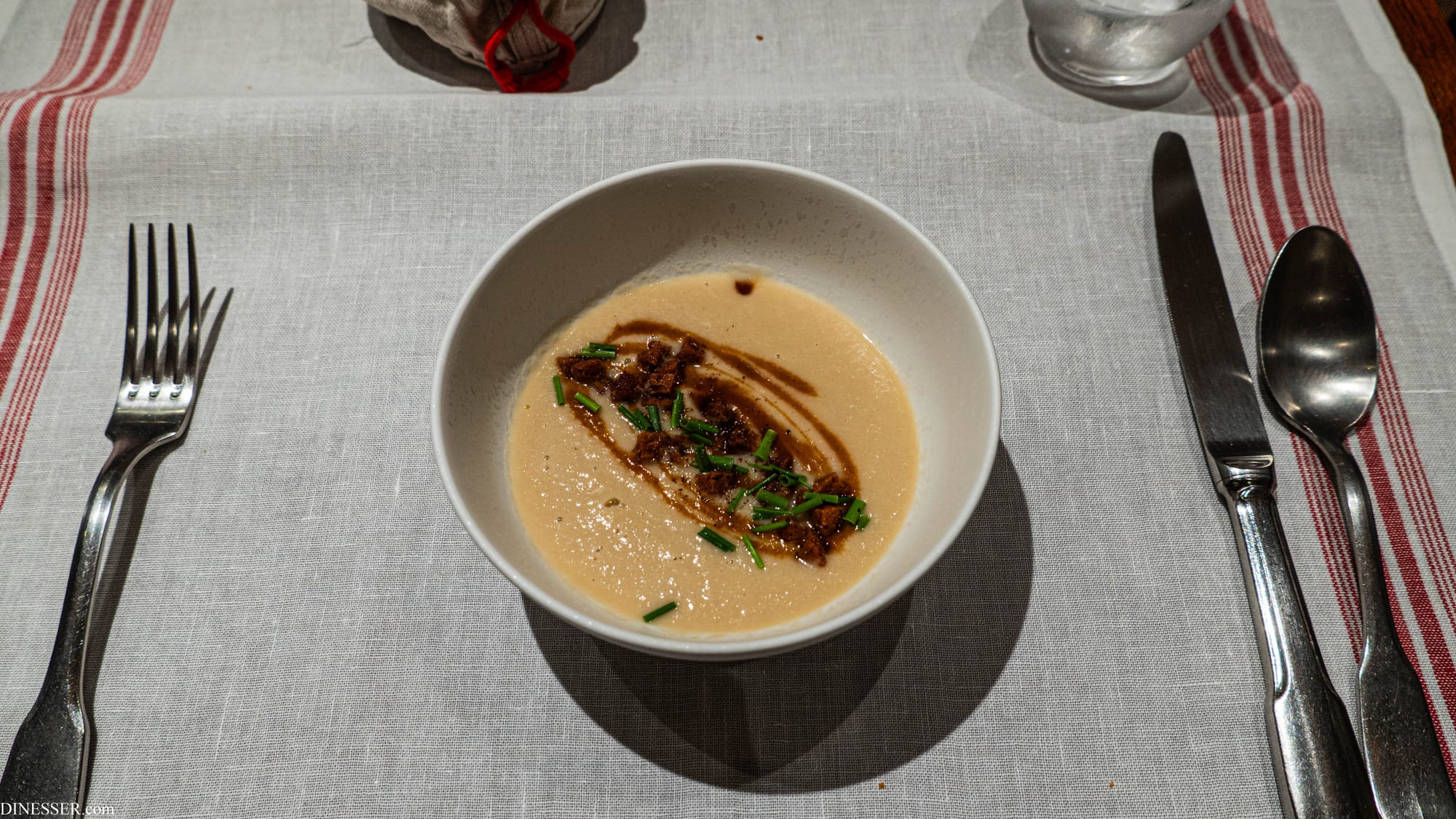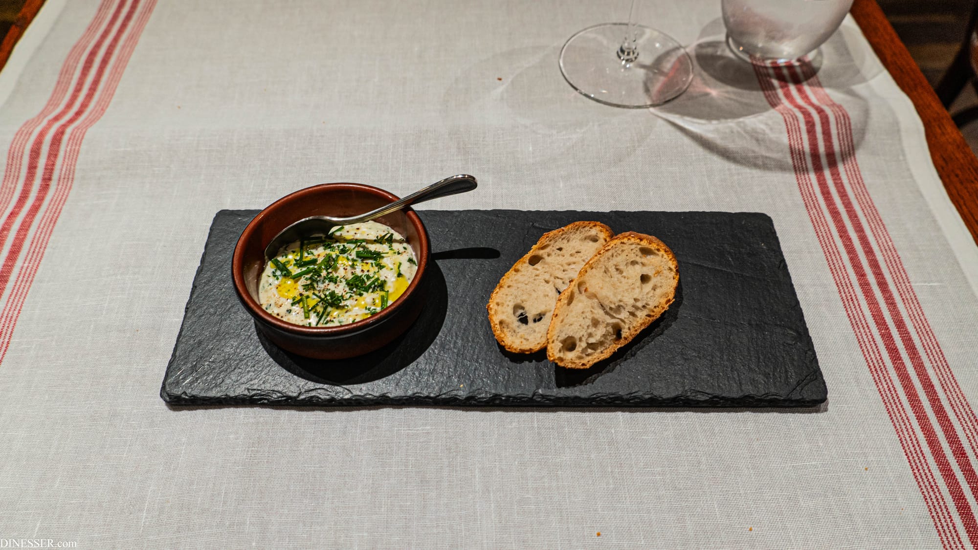 세르벨 드 카뉘로 치즈를 갈음하는 것은 꺼릴 만한 일이지만, 오히려 이런 곳이기 때문에 감히 권할 수 있는 것이라 생각해서 치즈 카트를 감히 물리고 이 옵션을 선택했다. 프로마주 블랑에 처빌과 차이브로 연출하는 이 딥-내지-스프레드는 이름처럼 리옹의 위대한 직물공, 카뉘(canut)들의 음식으로 값비싼 단백질의 대체재로 찾은 프로마주 블랑에 대한 헌사다. 하지만 그 지혜가 얼마나 영리한가! 식전에 먹었다면 그 위력에 더욱 경탄했으리라.