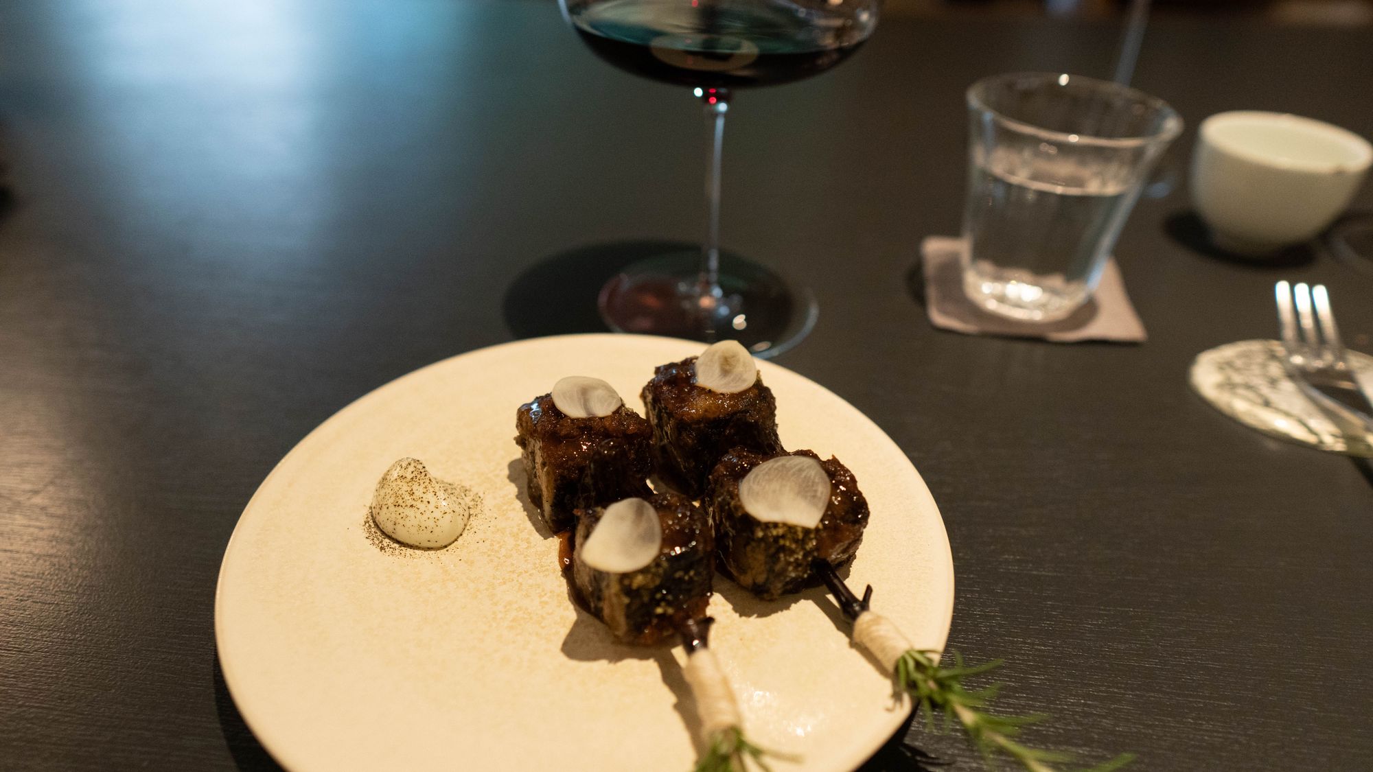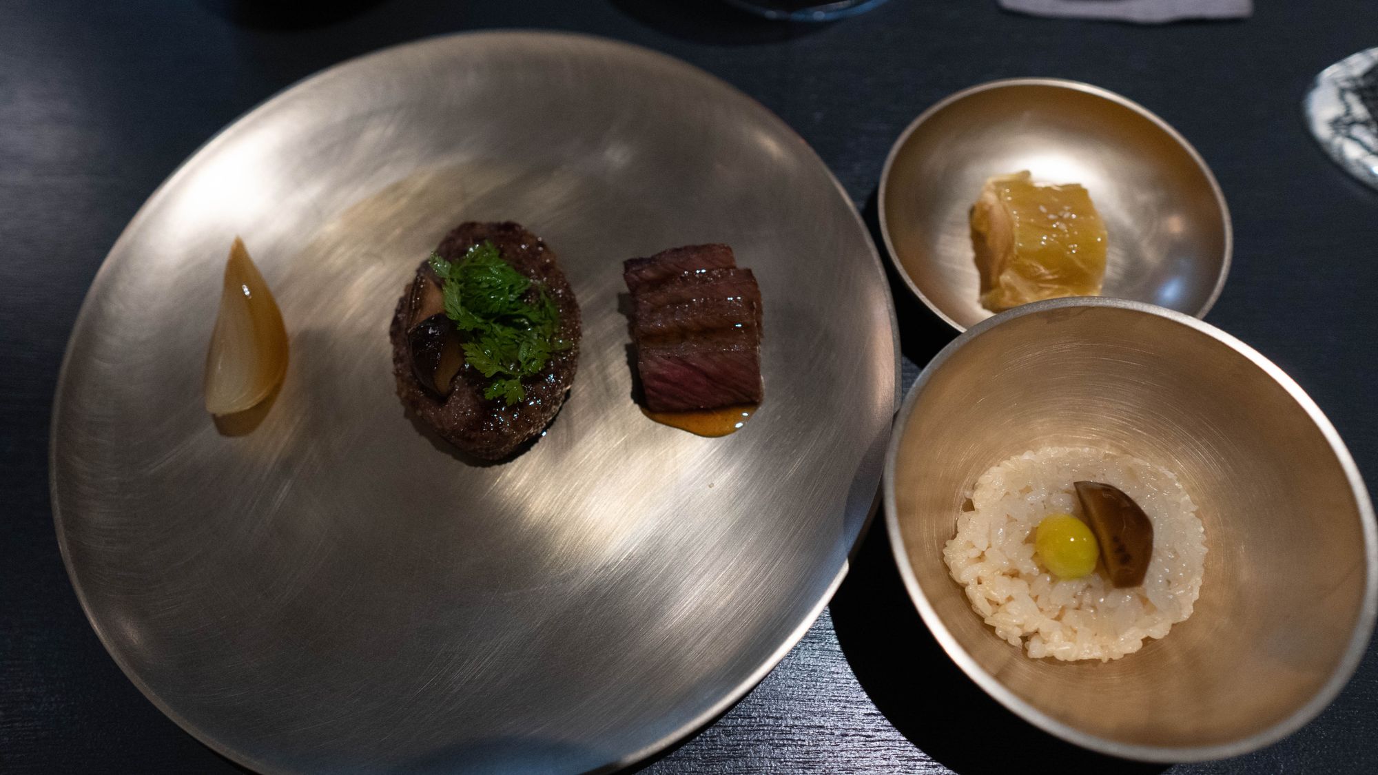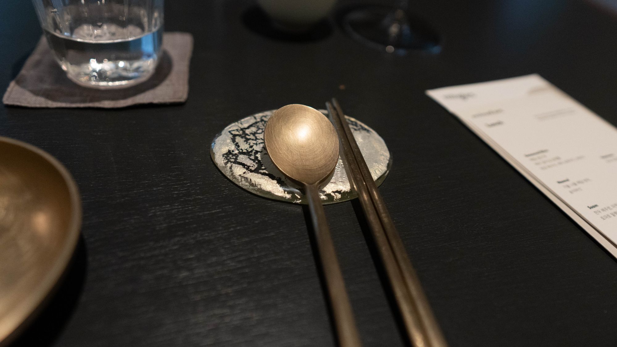 떡갈비 반상에서 반상이니까 놋수저라는 설정 또한 습관적이라는 인상을 지울 수 없다. 파인 다이닝에 이르는 레스토랑인데 떡갈비를 젓가락으로 가르고 있다. 그나마도 전복 살 씹는 재미가 살아있는 떡갈비라 애석하게도 힘주는대로 갈라지지 않는다. 양고기를 낼 때는 그에 맞게 날카로운 칼을 내면서 반상은 단지 반상이기 때문에 수저인가. 심지어 밥은 질기도 하거니와 극소량이기 때문에 이 크기의 숟가락은 쓰지 않아도 무방하다.