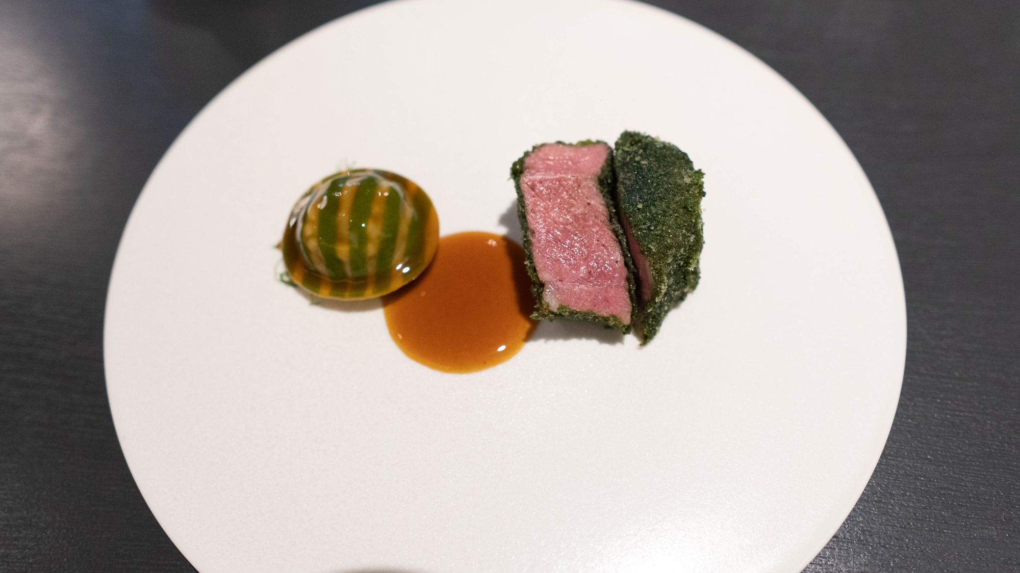화이트 와인에 맞춰나오는 'Sense of Jeju', 한식 문화를 인용하고 있는 'Namul'과 'Ssam'은 한층 더 착잡하다. 'Lamb'과 'Hanwoo'가 파인 다이닝의 수준을 보여주지 않는게 문제라면 이들은 실패에 가까운 요리다. 'Sense of Jeju'의 금태는 생선과 전복, 둘 모두 본질적인 '빵'의 문제도 있겠지만 특히나 금태는 조리 상태가 나쁘다. 극단적인 기름기로 이름값 높은 생선인데 살의 일부는 건조하다고 느낄 정도이니. 애호박은 밋밋한 단맛을 더할 뿐이며 살사 베르데로 소개되는 소스는 실상 살사 베르데가 전혀 아니다. 살사 베르데가 아닌 것에 더해서 소스의 역할도 해내지 못한다. 지방이 풍성한 생선에 어울릴 만큼 풍미를 당기지 못한다. 단호박 또한 본래도 풍미가 진하지 않은 것을 표면적만 넓혀 밋밋한 단맛만 남긴다.