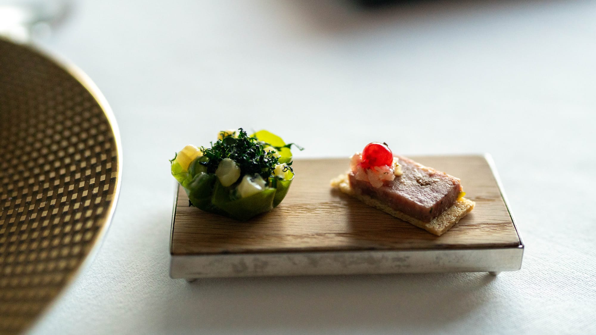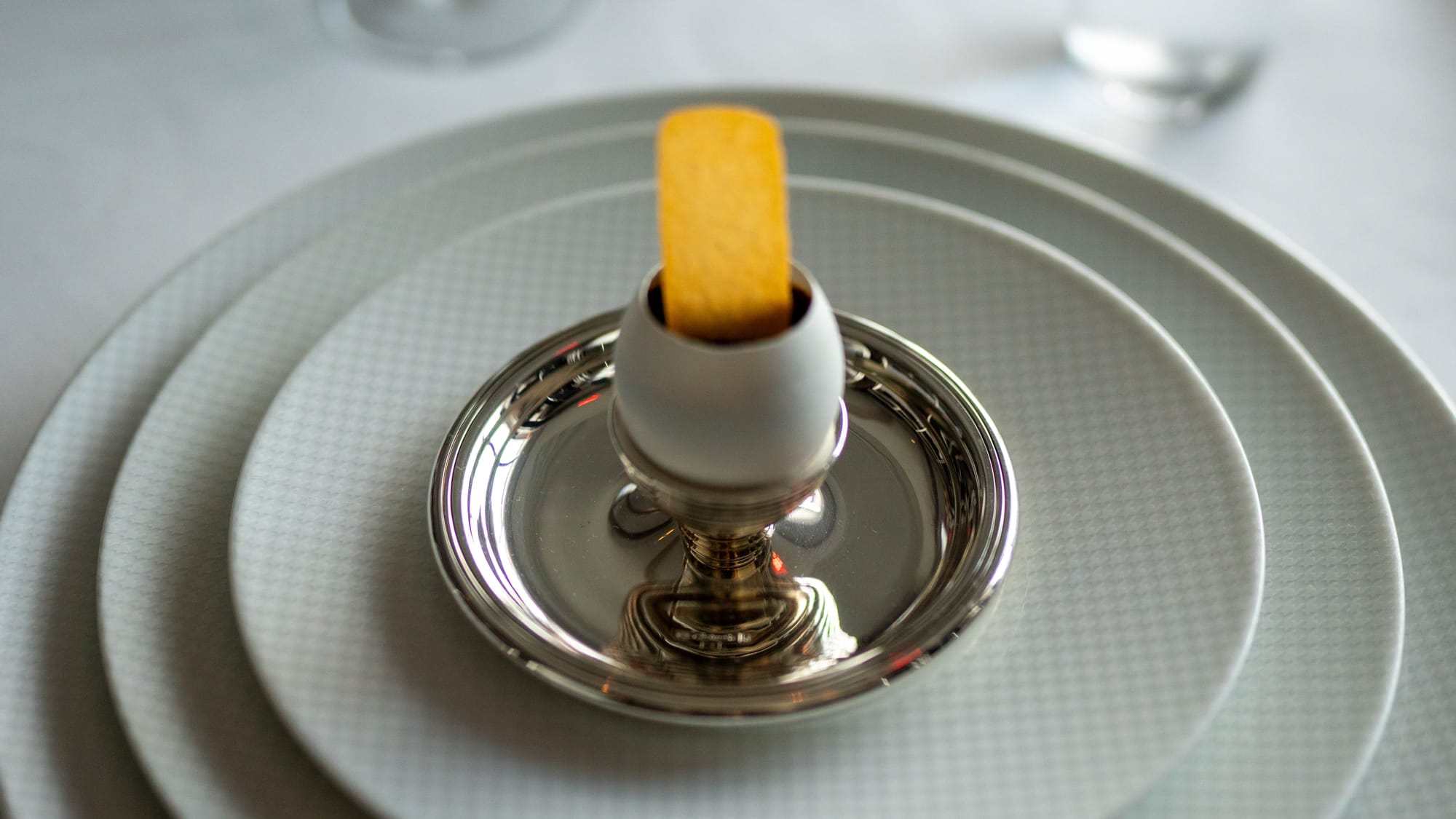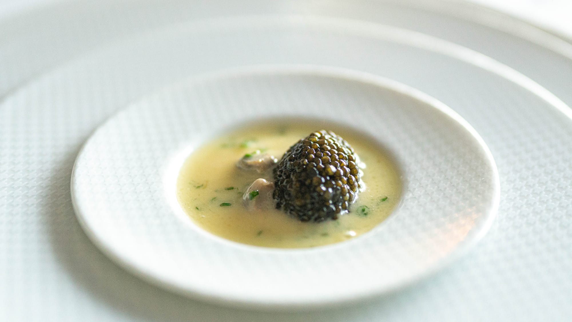 토마스 켈러의 요리 인생을 상징하는 몇 가지 요리 중에서도 가장 대표적인 작품이라고 할 수 있는, 따뜻한 굴과 사바용, 타피오카, 오세트라 캐비어. 골드만삭스 출신의 캐비어 비즈니스 베테랑과 손을 잡고 자체적으로 제작해 출시하는 캐비어를 사용하고 있다. 양식이 아닌 캐비어를 사용하던 시절부터 이어온 켈러의 요리지만, 캐비어 자체의 매력보다는 캐비어에서 타피오카, 사바용, 굴으로 이어지는 호흡에 더욱 집중하게 된다. 특유의 점도가 켜켜이 쌓인 감칠맛과 짠맛, 그리고 바다의 향을 입안에 붙잡은 채로 폭발시킨다. 넉넉하게 입안에 넣으면 마치 수류탄을 손으로 잡고 악력으로 으깨는 듯한 경험을 하게 된다. 샴페인을 위한 요리, 인상과 기억을 남기는 요리.