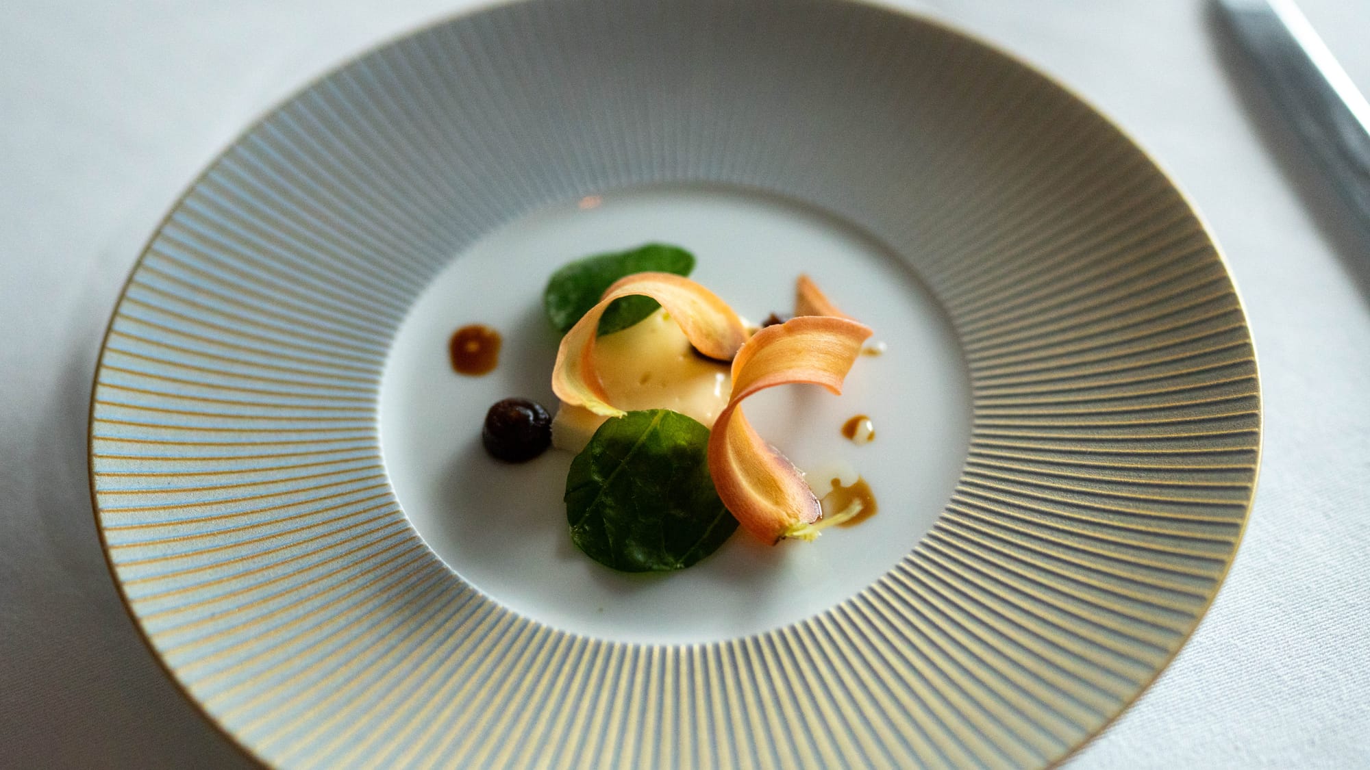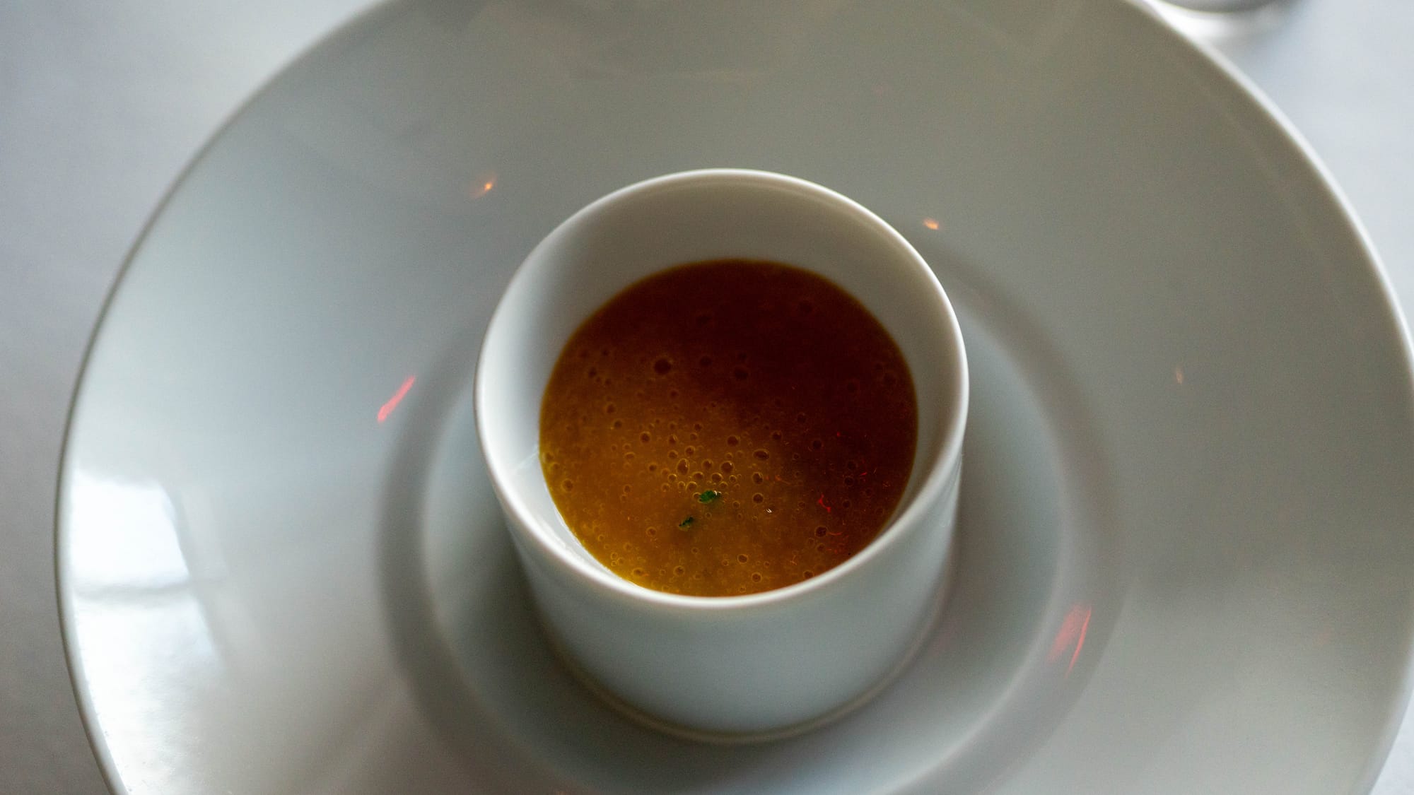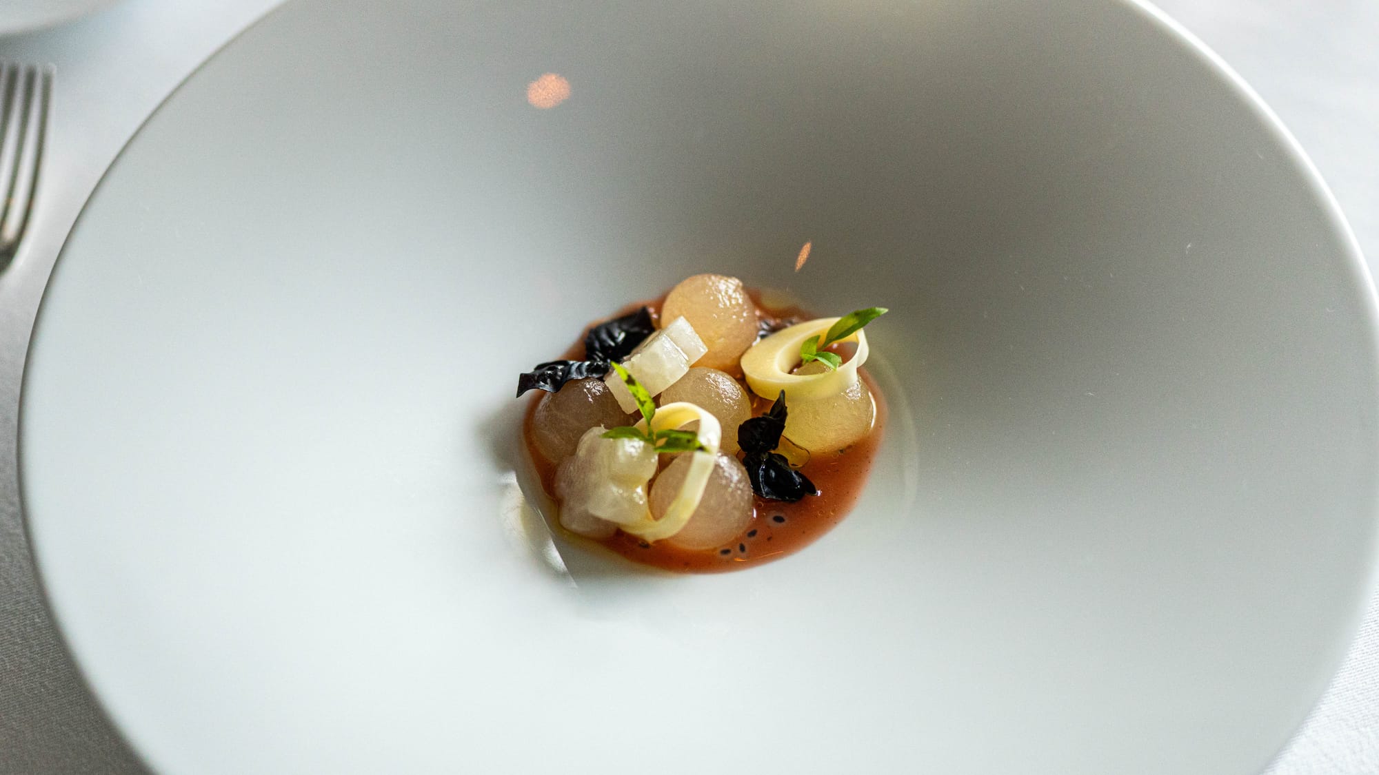 per se라는 이름을 쓰는 이유는 뉴욕, 나아가 동부 그 자체를 담아낸다는 포부를 드러낸다. 그래서 지역 재료를 사용하는 것이 강조되는데, 채소에 있어서 미 동부의 강점을 알기는 힘든 한 그릇이었다. 오히려 눈에 띄는 것은 볶은 호박씨의 고소함과 약간의 오일로 잡아낸 균형의 감각이었다. 차가운 온도나 맑은 질감에서 오는 청량함과 지방에서 오는 감칠맛이 교차하고, 허브와 꽃이 감각을 절묘하게 열어젖힌다.