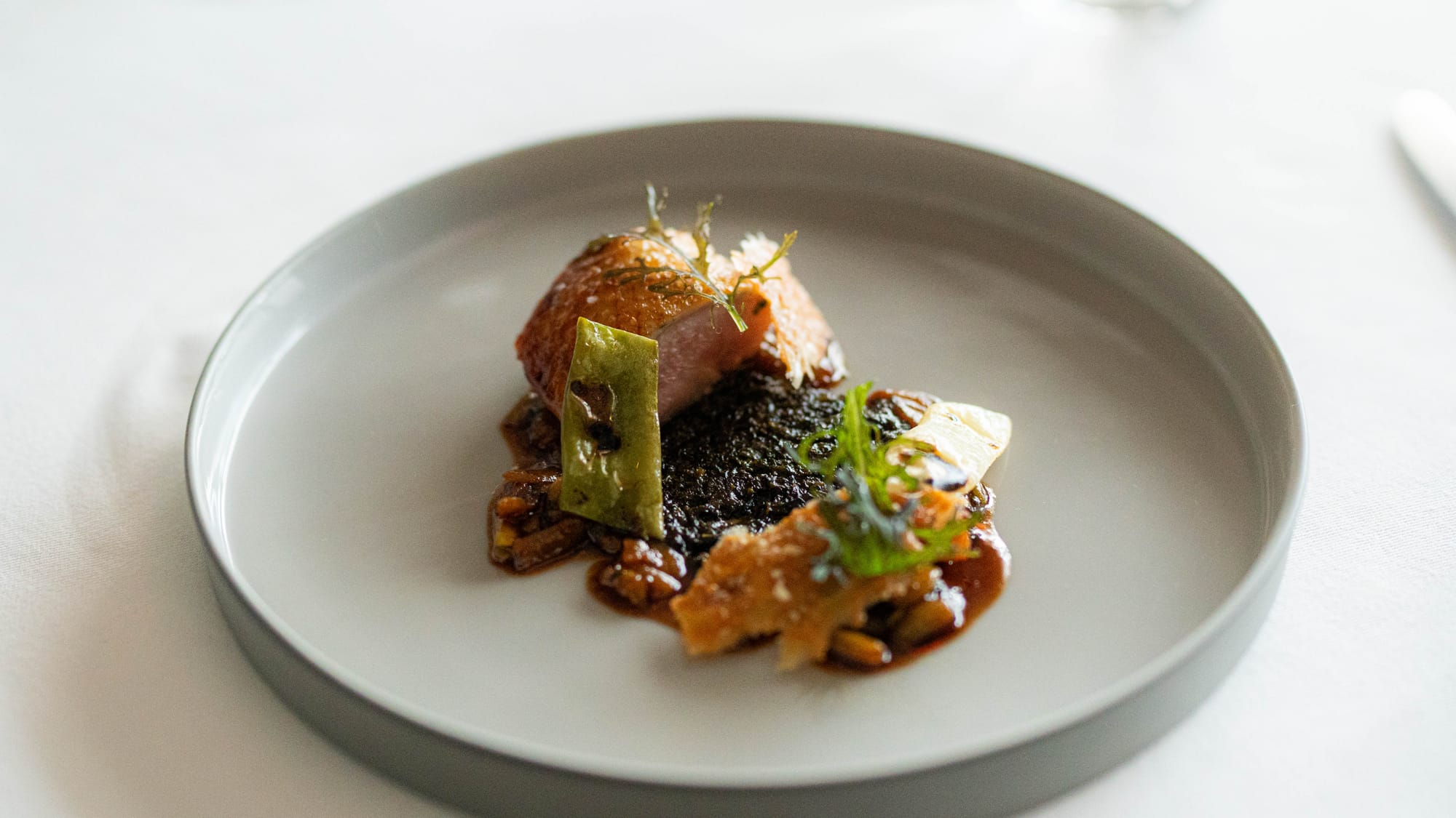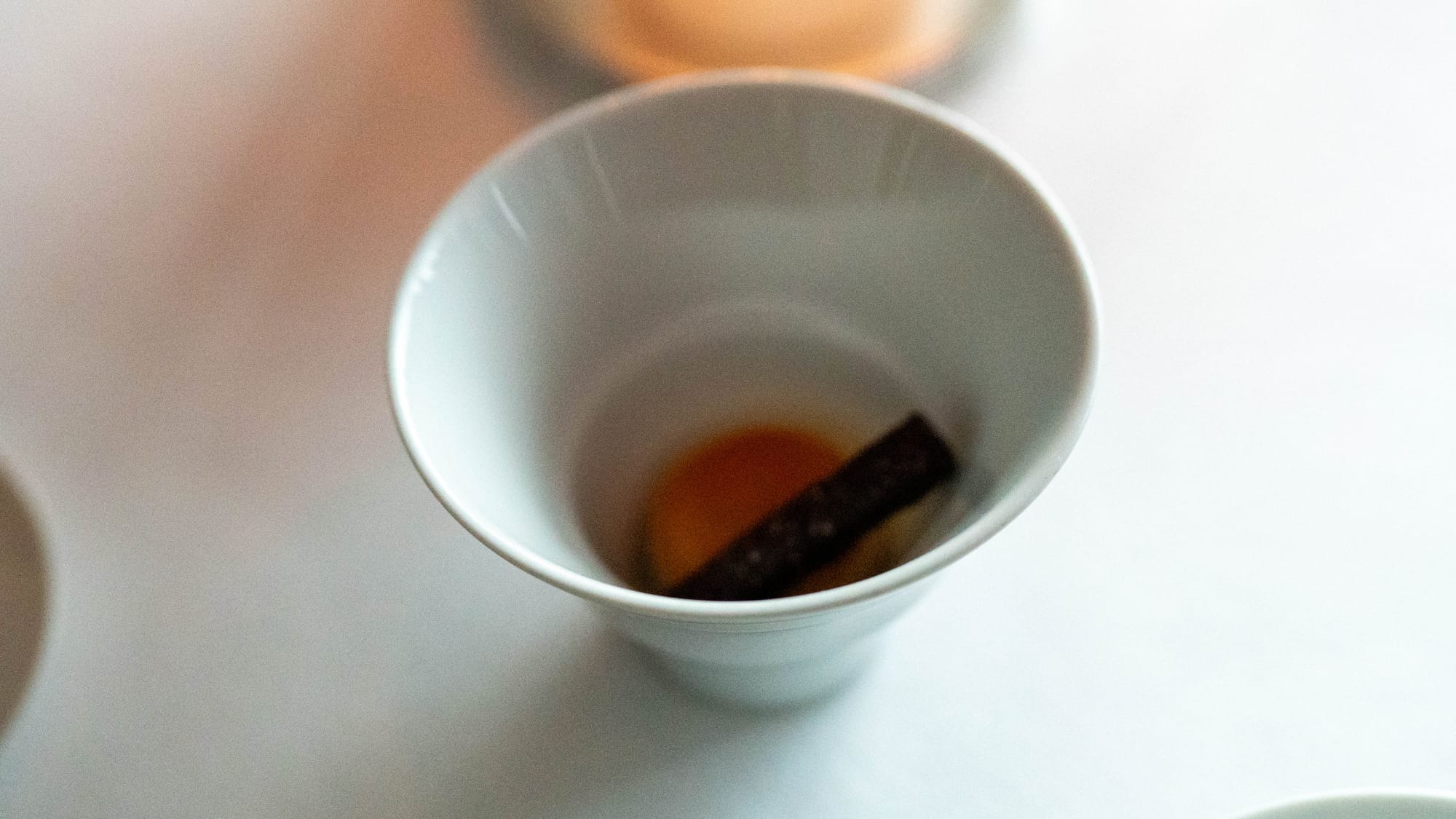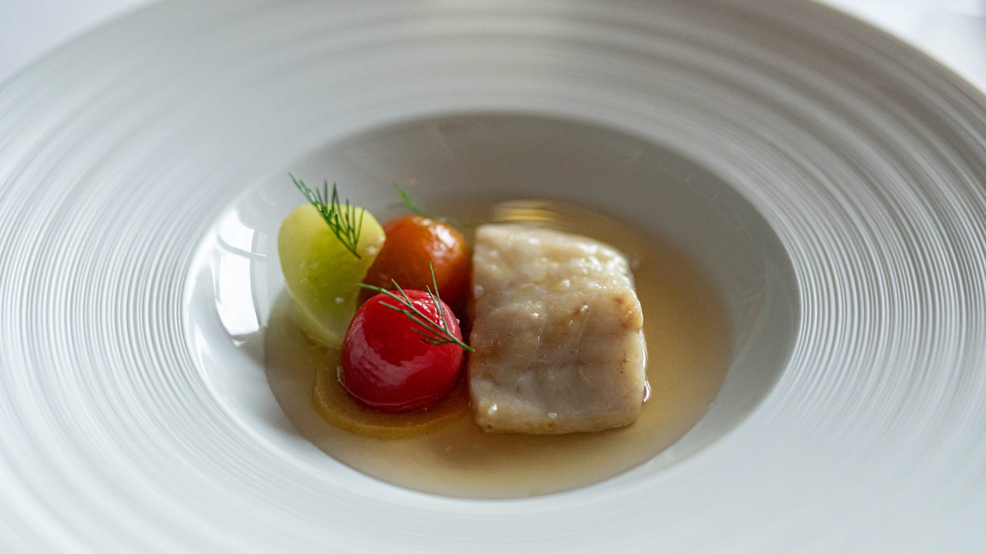 per se라는 이름을 쓰는 이유는 뉴욕, 나아가 동부 그 자체를 담아낸다는 포부를 드러낸다. 그래서 지역 재료를 사용하는 것이 강조되는데, 채소에 있어서 미 동부의 강점을 알기는 힘든 한 그릇이었다. 오히려 눈에 띄는 것은 볶은 호박씨의 고소함과 약간의 오일로 잡아낸 균형의 감각이었다. 차가운 온도나 맑은 질감에서 오는 청량함과 지방에서 오는 감칠맛이 교차하고, 허브와 꽃이 감각을 절묘하게 열어젖힌다.