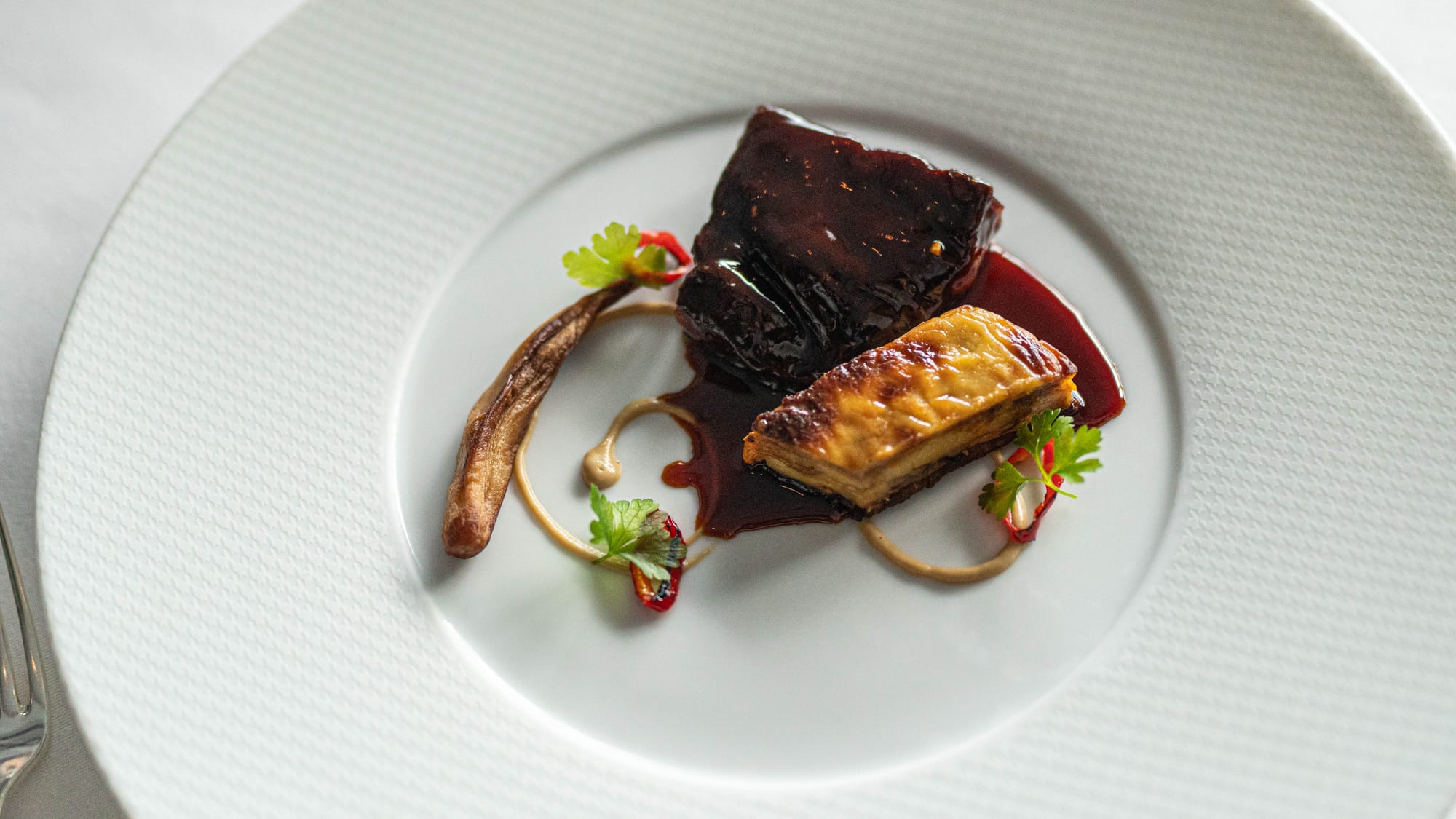 비앙드 서비스는 두 시퀀스로 이어지는데, 소스의 농도가 이제는 점성을 띄는 수준까지 올라오는, 가장 전형적인 형식의 흐름이 여러분에게도 눈에 띌 것이다. 자연스레 맛이 연한 메추리보다 갈비쪽이 눈에 띄는데, 지방은 물론 콜라겐까지 완벽하게 조리해낸 점이 눈에 띄고, 점도를 높게 해서 짜낸 소스는 단순히 그림을 그리기 위한 것이 아니라, 점도가 높고 피니시가 긴 나머지의 가락과 어울려 그림을 완성하기 위한 점이라는 것을 정확히 꿰뚫는다. 질감으로