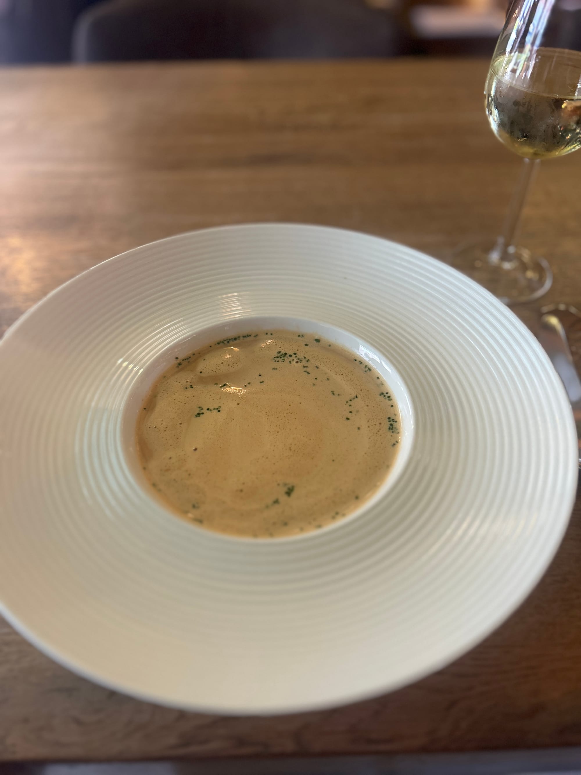 타퍼라이의 비스크는 다시금 나의 비스크에 대한 꿈과 사랑을 떠올리게 만든 일상의 걸작이다. 어둡게 뽑지 않았지만 (조명이 어두운 것이다) 충분한 껍질의 향, 맑지만 힘차게 저어낸 찰나의 질감, 그리고 방점을 찍는 것은 네덜란드의 특산물인 자주새우(Crangon crangon)로, 아주 작은 새우라 스프를 뽑기에는 무리가 있고 살의 단맛을 더하는 역할인데 적절한 질감으로 네덜란드의 비스크가 향해야 할 방향성을 멋지게 선보인다.