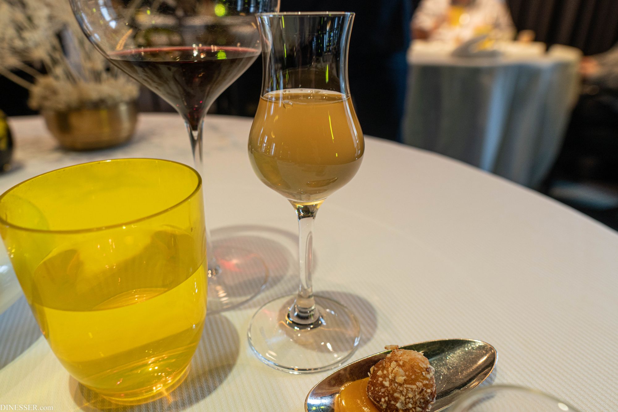 가격이 제한되어있는 테이스팅 코스라는 점도 있지만 랑구스틴이나 가재가 아닌 야채로 그려내는 대범함, 그리고 흔히 같은 고향의 잠봉과 먹거나 스튜 재료 정도로 들어가는 콩까지 사용하는 자유로움, 그러면서도 마지막은 다시 이곳 대지가 가진 힘을 느끼게 하는, 목가적인 이상향을 그리는 듯한 향의 뉘앙스. 단순하다고 하지만 결코 맛의 수준이 단순하다는 느낌이 아니다. 선명함이나 뚜렷함이라는 표현이 어울릴지도. 그만큼 방향성이 확실하며 나아가는 발걸음이 굳세다.