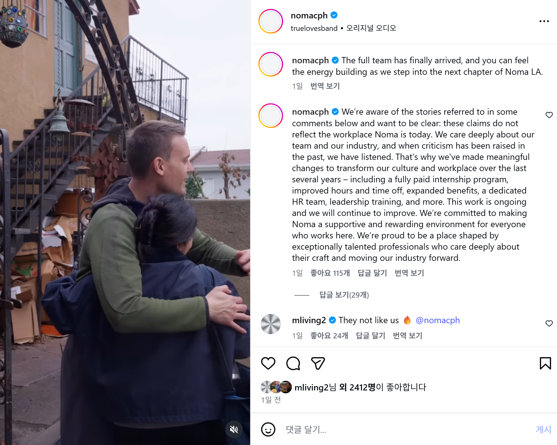 푸글리시 셰프 또한 노마의 수셰프였기에, 그는 노마의 문제에 대해서도 입장을 밝혀야 하게 되었다.