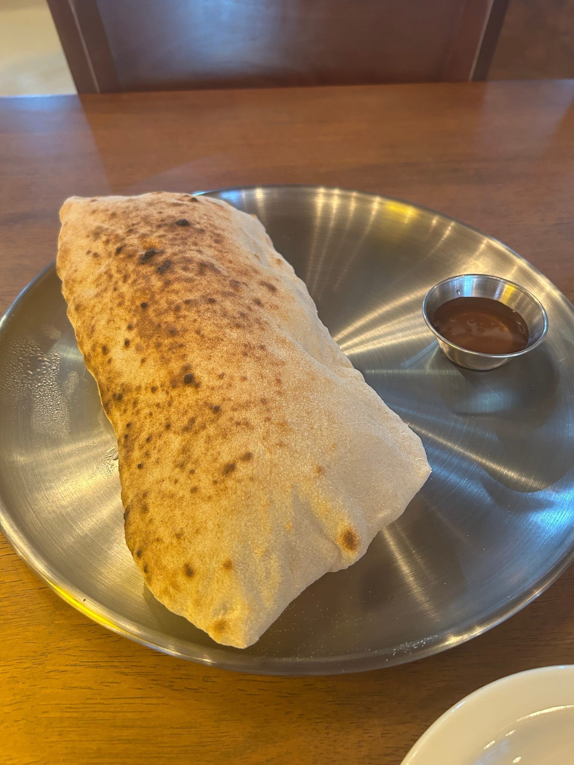 돈 받고 파는 빵부터 이야기해 보자. (나는 일단 어느 식당이든 빵을 돈 받고 팔면 주문해본다. '식전빵'의 나라에서 그 의지를 높이 사기 때문이다) 피자 반죽을 그대로 구워내 엄청나게 부풀어오르는데, 여유가 있는 상황임에도 그다지 레스팅하지 않아 마치 펄펄 끓는 뚝배기를 받아든 것처럼 조심해야 했지만 그 속에는 유료인 빵의 가치가 있었다. 기분 좋은 사워도우의 신맛, 튼튼한 구조. 이 반죽으로 빚을 피자를 기대하기에는 충분했다.
