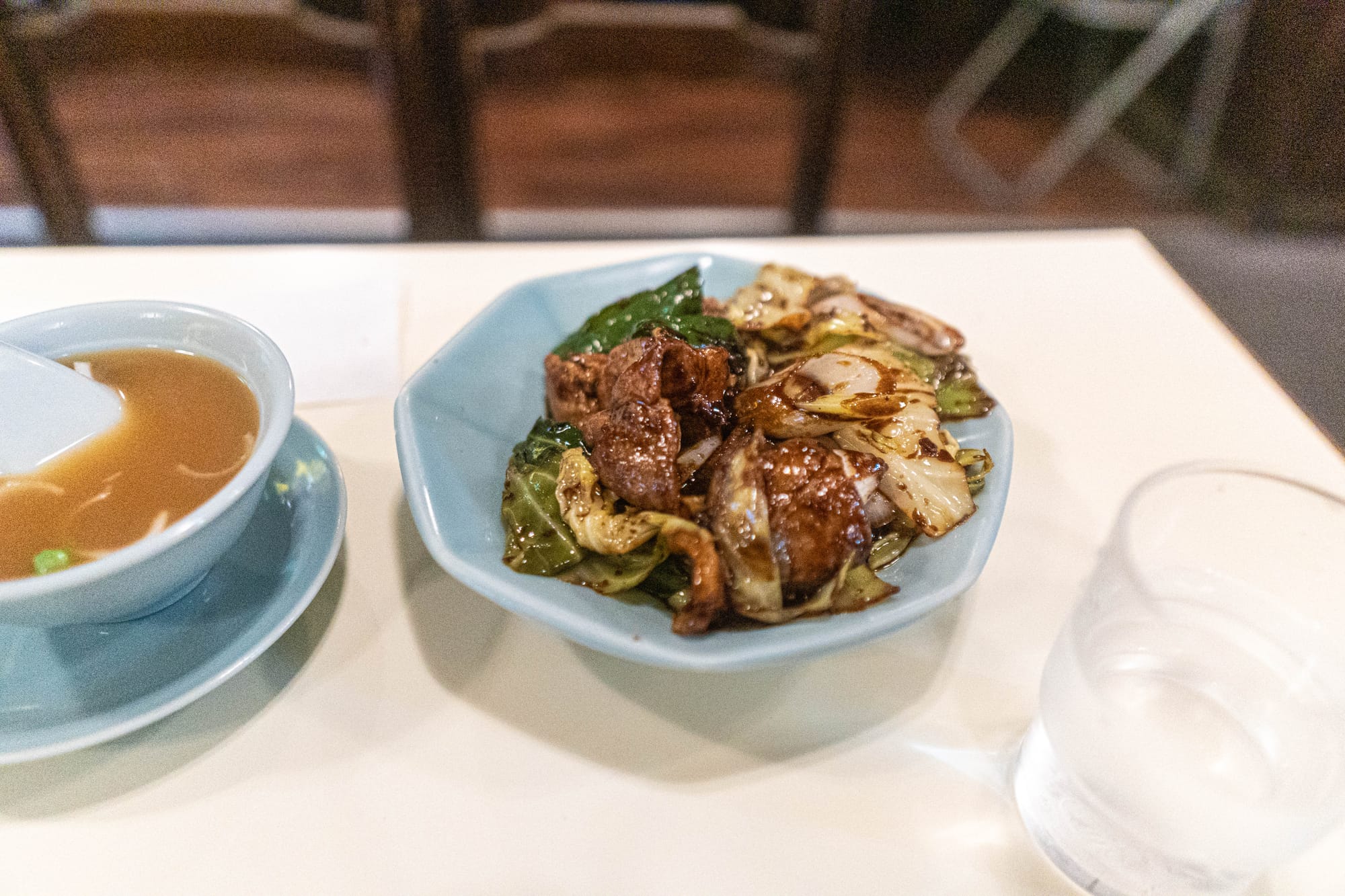 이 가게를 빛내는 또 다른 요리는 회과육(ホイコーロー)으로 첨면장의 단맛이 센불에 빠르게 볶아내 조직의 질감이 살아있는 양배추와 만나 한층 더 짙은 중화의 단맛으로 이끌고, 균형은 마늘과 피망이 맞춘다. 목살(일본에서는 카타로스) 즈음한 부위를 써 지방의 분포가 고르지 않은 점은 옥의 티이지만 가벼운 동네 요리로는 더할 나위가 없다. 차슈와 같이 중화 요리가 결코 강한 불을 쓴다고 해서 촉촉함을 죽이는 것이 아니라는 핵심을 꿰뚫고 있다.