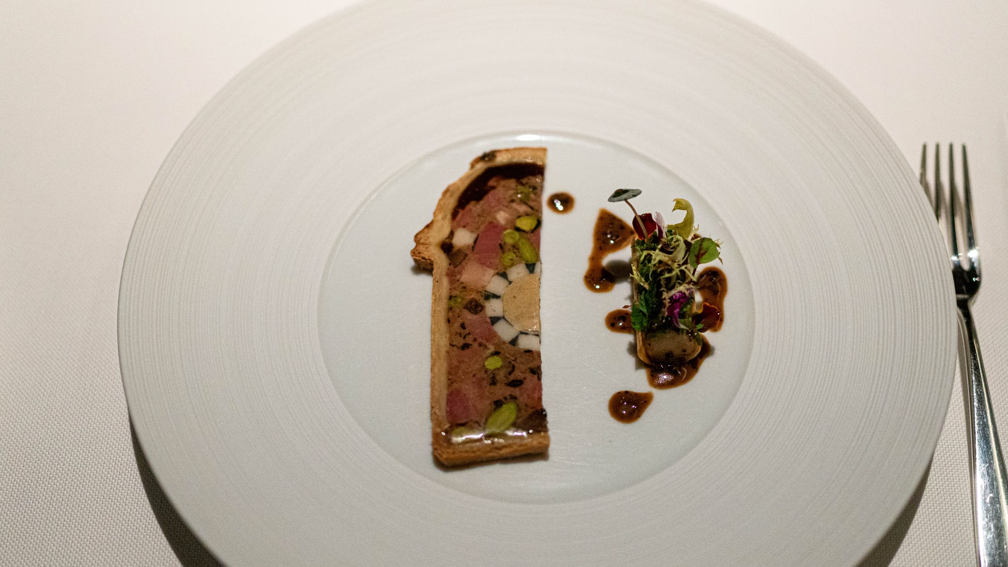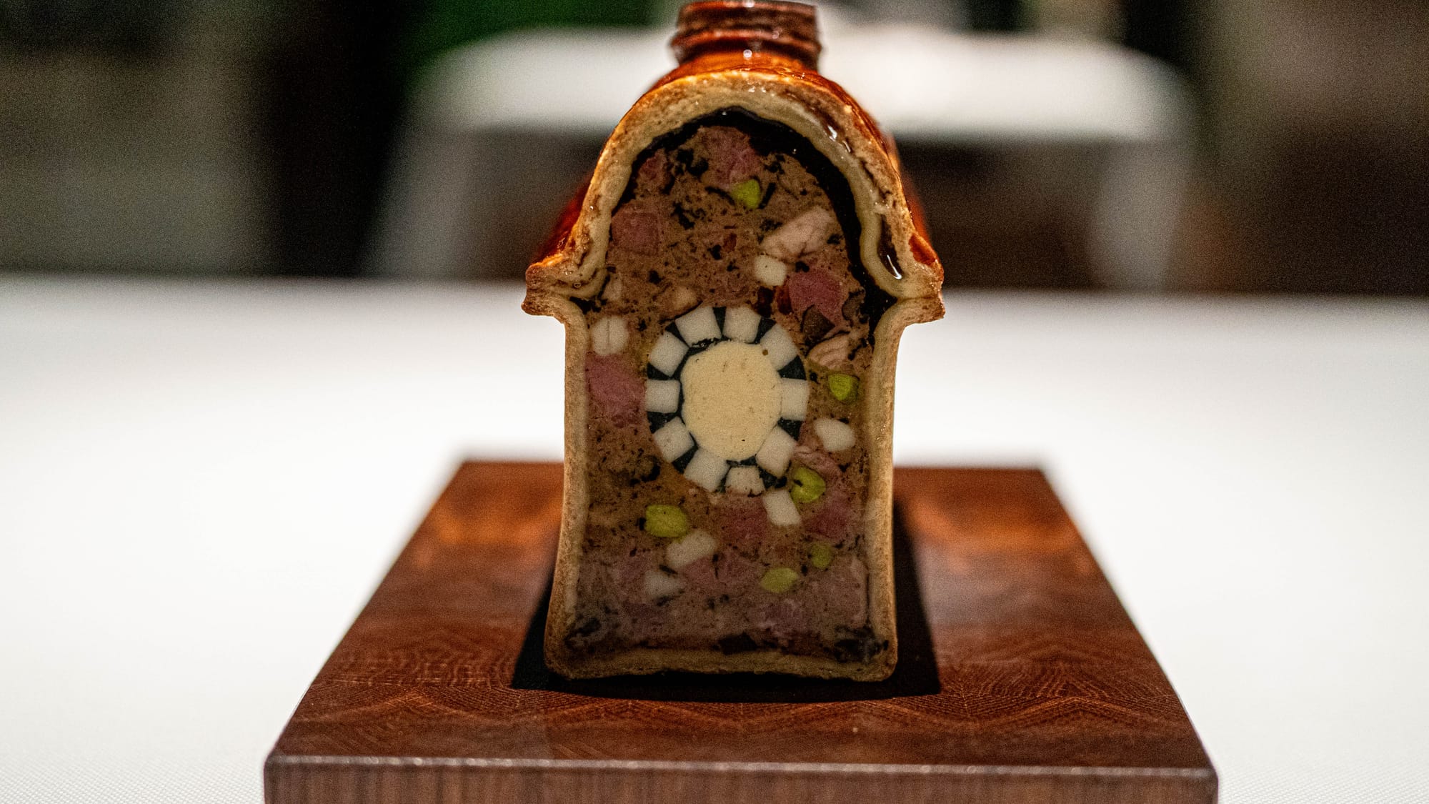 파테 앙 크루트는 푸아 그라나 피와 같은 질감은 줄이고 향이 진한 게임의 비중을 높여 독일의 사냥 시즌을 본떴다. 특유의 향이 있는 꿩의 인상이 기억에 진하게 남는다. 단면에 한 층의 레이어를 더해 치밀하게 마무리하고, 피스타치오와 식초가 사냥고기의 밀어닥치는 강렬함을 다스린다. 프랑스의 샤퀴테리에서 흔히 만날 수 있는 파테 앙 크루트와는 분명 다른 방향을 가지고 있는, 그래서 더욱 의미 있는 파테다.