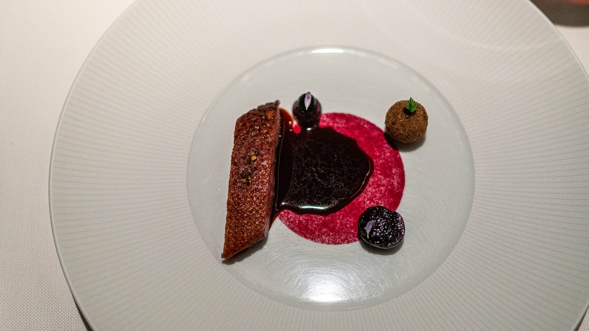 약간의 커피로 숯의 여운을 잇고, 비트로 전통적인 컨디먼트의 뉘앙스를 살렸다. 그렇지만 이 요리에서 가장 강력한 힘을 보여준 것은 무엇보다 소금과 후추. 최심부까지 고르게 퍼진 짠맛과 껍질 위에 거칠게 올린 후추가 고기가 가진 잠재력을 끌어낸다. 단순하며 강력한 오리 요리로 다양한 방식으로 자극했던 감각이 가장 원초적인 방향으로 집약된다.