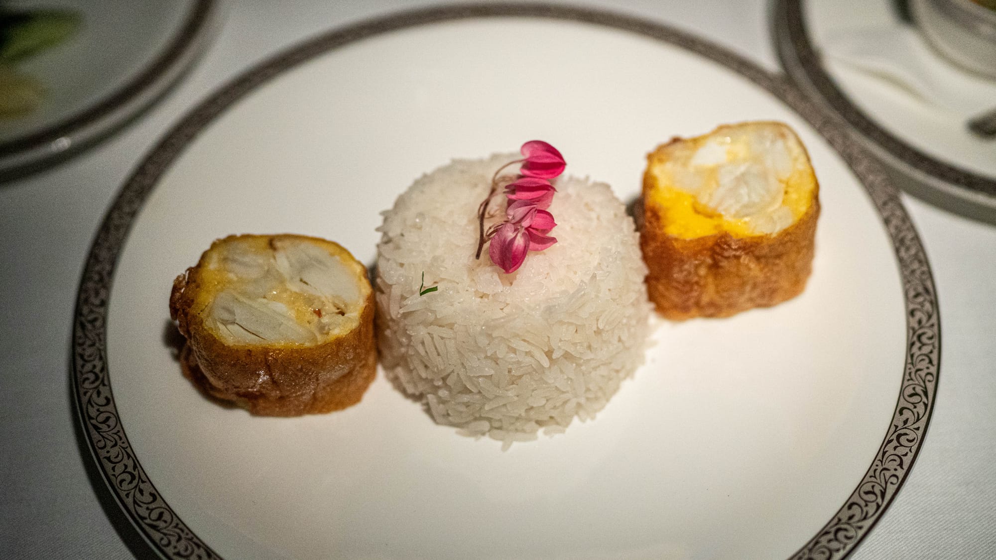 사실 진짜 주인공은 내게 있어 이쪽이었다. 게살 오믈렛! 제파이 여사를 상징하는 요리라고도 할 수 있는데, 정작 그쪽은 막대한 대기 시간과 태국이라고는 생각할 수 없는 가격 때문에 찾아먹을 음식이 아닌데, 타이항공에서 선보이는 게살 랍스터는 제파이 여사를 잊게 만들 정도로 충분했다. 그쪽에 비하면 달걀이 살짝 두툼하게 입혀져 있지만, 부드럽게 조리한 게살에서 바삭하게 감싸는 크러스트로 이어지는 호흡이 자스민 라이스와 멋드러지게 이어진다.