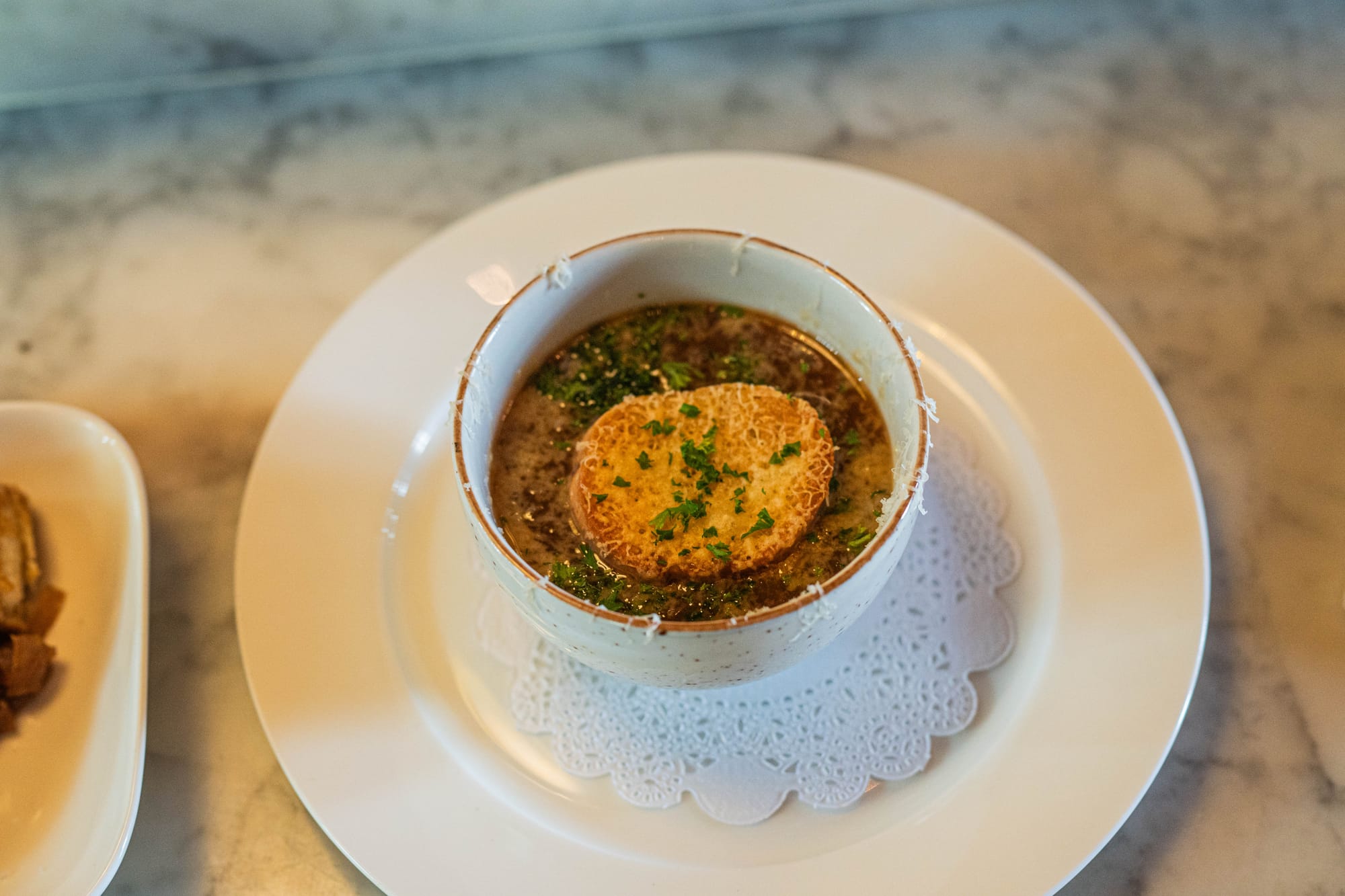 그뤼에르 치즈와 차이브로 익숙하게 만든 스프 역시 소박함이 가진 매력을 한껏 뽐낸다.