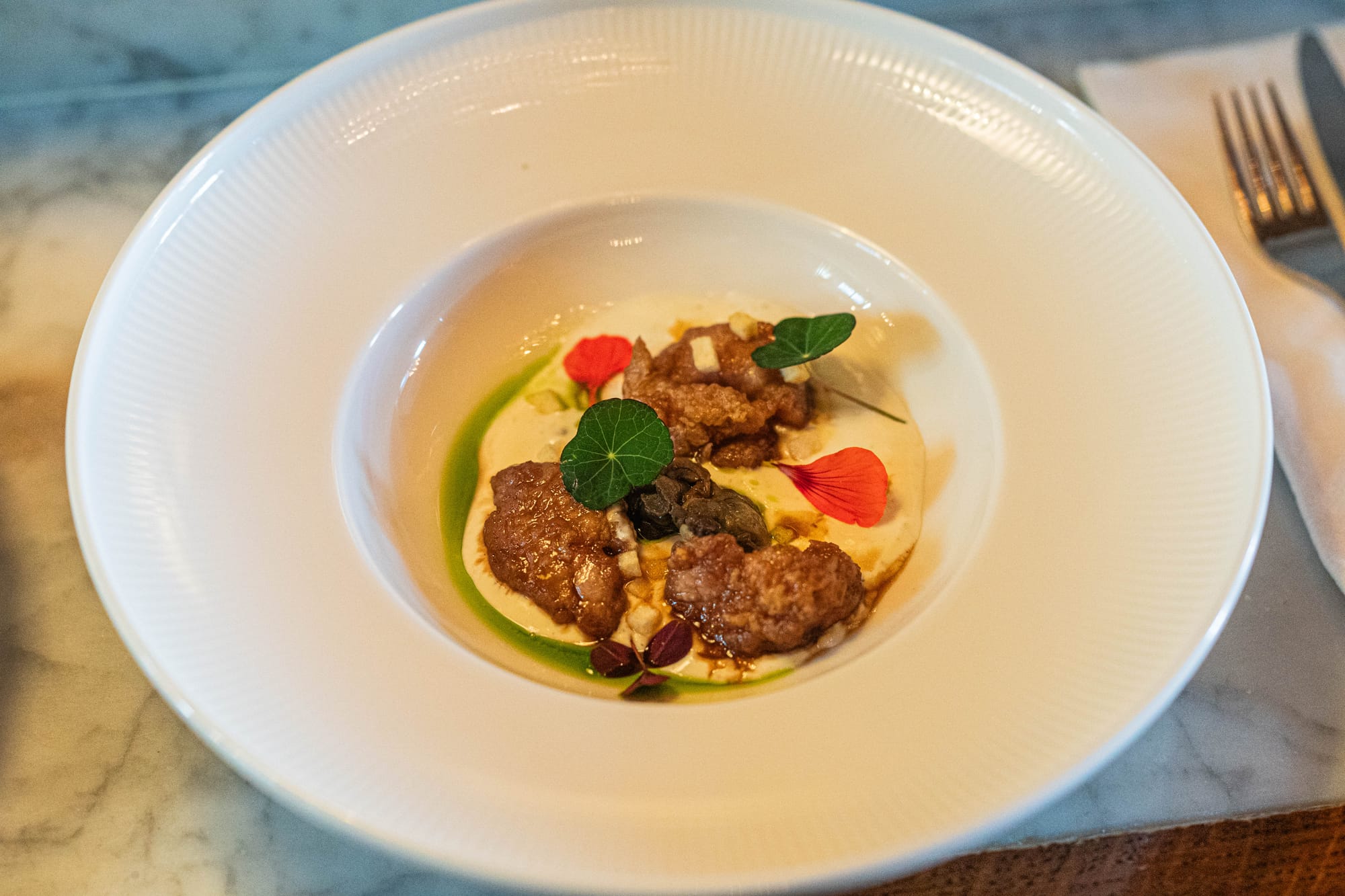 흉선과 크림 바탕의 소스의 궁합 역시 그야말로 전형을 넘어선 전통에 가까운 방식이라 할 수 있는데, 에스카르고가 흉선의 지방맛과 선율을 이룬다. 다만 앞선 푸아 그라에서는 팬 프라이가 소박한 방식으로 정서적인 만족을 주었다면 흉선은 다소 마르도록 튀겨낸 것이어서 편안함 속의 관성의 함정을 엿볼 수 있었다.