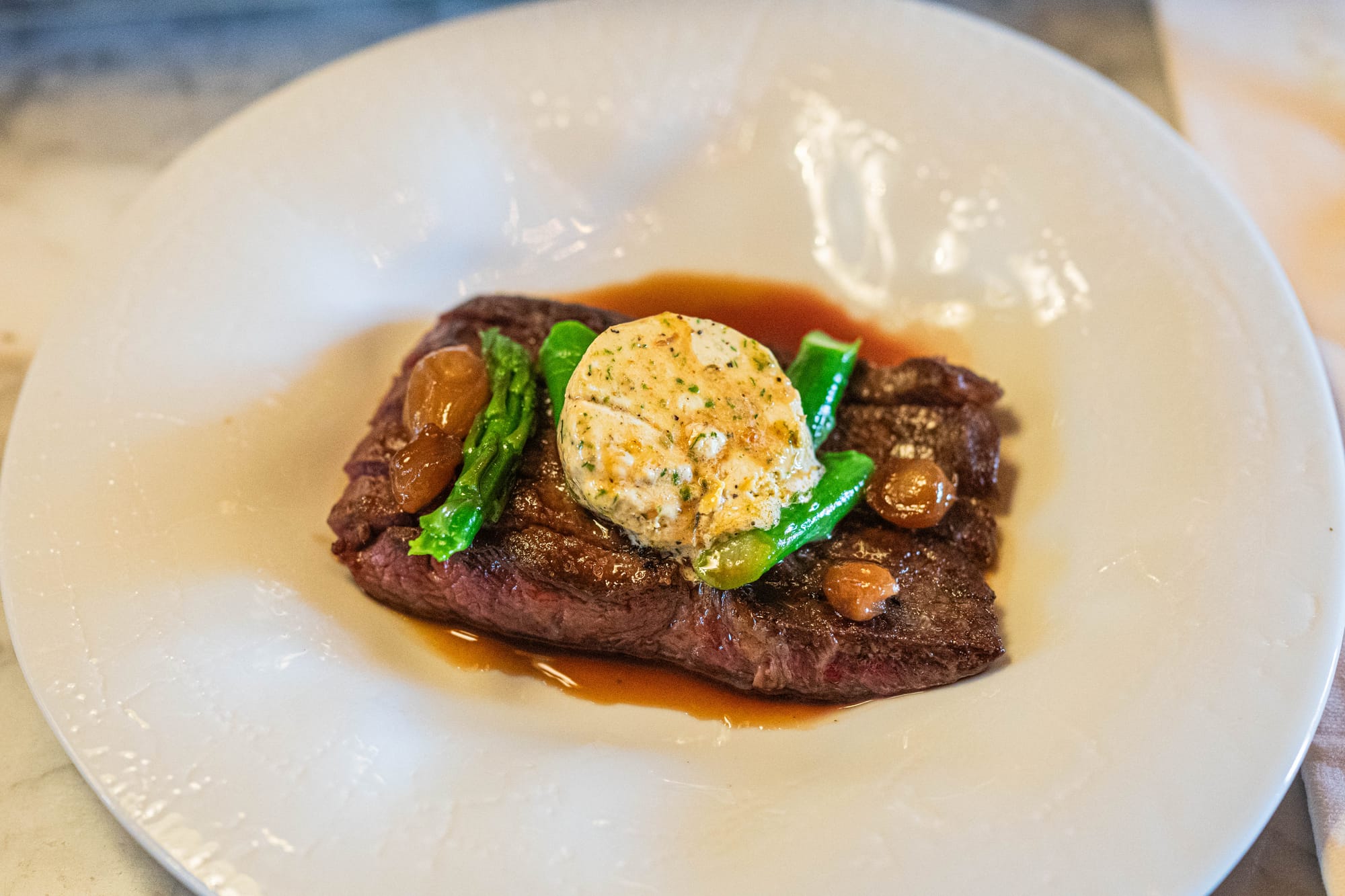 메트르 도텔 버터를 얹은 스테이크는 낡고 무거운 요리라는 인식 때문인지 찾아보기 어려운 요리가 되었지만, 메트르 도텔 버터나 베아르네즈같은 느낌으로 연출하는 육류 요리가 가지는 분명한 매력이 있다는 것을 보여준다. 쇠고기라면 jus가 법이 된 시대에 그 예외를 만날 수 있는 것이 얼마나 반가운가.