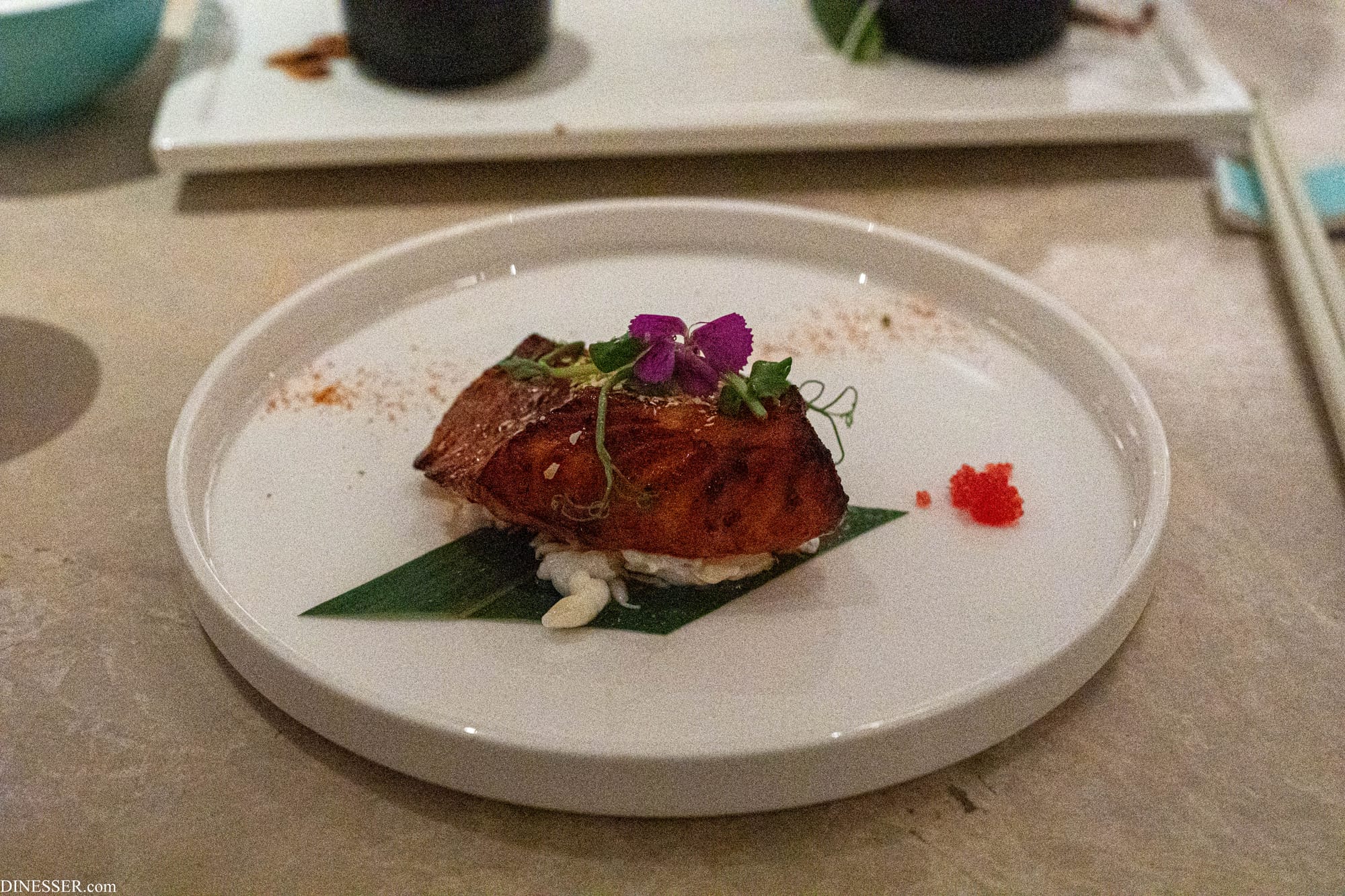 문제는 제렘 룽의 스타일, 흔히 이노베이티브로 표현되는 여러 요리의 영향을 받아들이는 방식인데 이 요리에서는 그것이 좋아서 받아들이는 것보다 일단 새로워야 한다는, 프로듀싱 방식의 주방에서 흔히 나오는 강박성이 느껴졌다. 대표적으로 피에르 에르메의 이스파한에 사용되는 장미수를 이용해 소스에 향을 입히고 단맛을 크게 당겨냈는데 차나 술을 곁들여도 버거울 정도로 균형이 흔들린다. 다행히도 소스의 대체재가 존재하지만, 장미꽃 소스를 곁들인 취지는 무색해졌다.