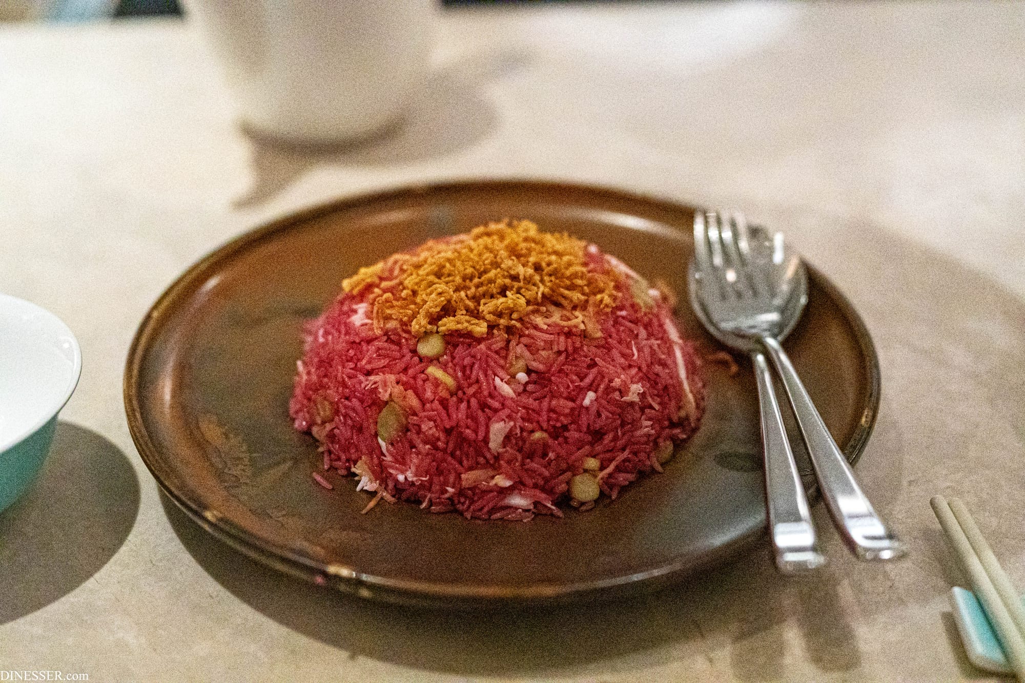 하지만 흔한 실수 하나로 무너지는데, 그 중 하나가 이 동그랗게 담는 시간이다. 당연히 틀 노릇을 하는 용기에 담아낸 다음 얹어내는데 뜨겁게 볶아낸 밥이 뭉치면서 안쪽이 빠르게 프라임 타임을 지나게 되고, 자칫 모양을 확실히 내기 위해 담는 과정에서 누르면 문제는 더 커진다. 양념을 바깥으로 뺄 정도로 간을 약하게 볶은 볶음밥이다 보니 하자가 있는 부분이 더 눈에 띄게 된다. 사실 이 문제는 예쁘게 담지 않고 흩뿌려내듯 담아서 쉽게 예방할 수 있는 문제라서, 볶음밥의 몸값이 올라갈 때만 생기는지라 나는 이를 '고급 볶음밥의 역설'이라 생각하고는 한다. 이른바 호텔식 중식(나는 이 표현을 참으로 싫어한다)을 드시는 날이면 한 번 생각해 보시라. 국내 호텔 중 이것에서 자유로운 주방은 거의 없다.