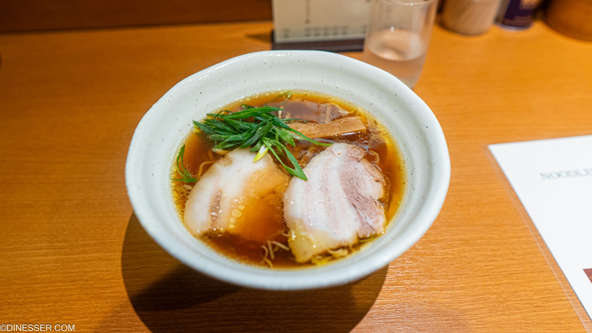 특징을 상당히 달리하는 스프로 바꾸더라도 여전히 한 그릇의 식사로 완성될 수 있는 것은 유독 이 면요리가 널리 사랑받는 이유이기도 하겠지만, 그 위를 꿈꾸는 주방의 발목을 잡는 지점이라는 생각도 든다. '이래도 좋고, 저래도 좋다'는 말은 논쟁을 불식시키고 사고를 차단시킨다. '다 좋아한다'는 말은 아무것도 좋아하지 않는 것과 어떻게 다른가. 그러한 지점에서 나는 분명히 말할 수 있다. 나는 수량한정이 아닌 중화소바를 좋아하고, 이 스프가 이곳의 설정에 어울린다고 생각한다. 순수한 동물성 요리로 시작한 중화요리인 라멘이 일본적 성질을 덧입힌 것. 돼지와 닭의 지방을 바탕을 몸통으로 간장으로 스프에 색을 입히듯 해산물로 맛을 입혀낸 것. 이런 스타일의 중화소바는 이런 맛이 가장 잘 어울린다.
